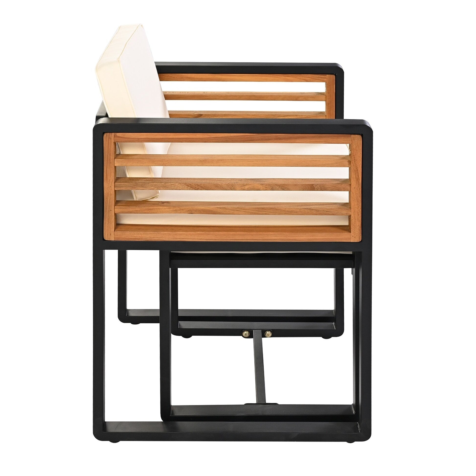 Durable & Weather-Resistant Materials: A sturdy metal frame and premium acacia wood ensure durability and longevity, and the backrests are load-bearing enough to support all your relaxing activities. A cross-shaped base and leg protectors underneath the table enhance stability and prevent damage to the decking surface.