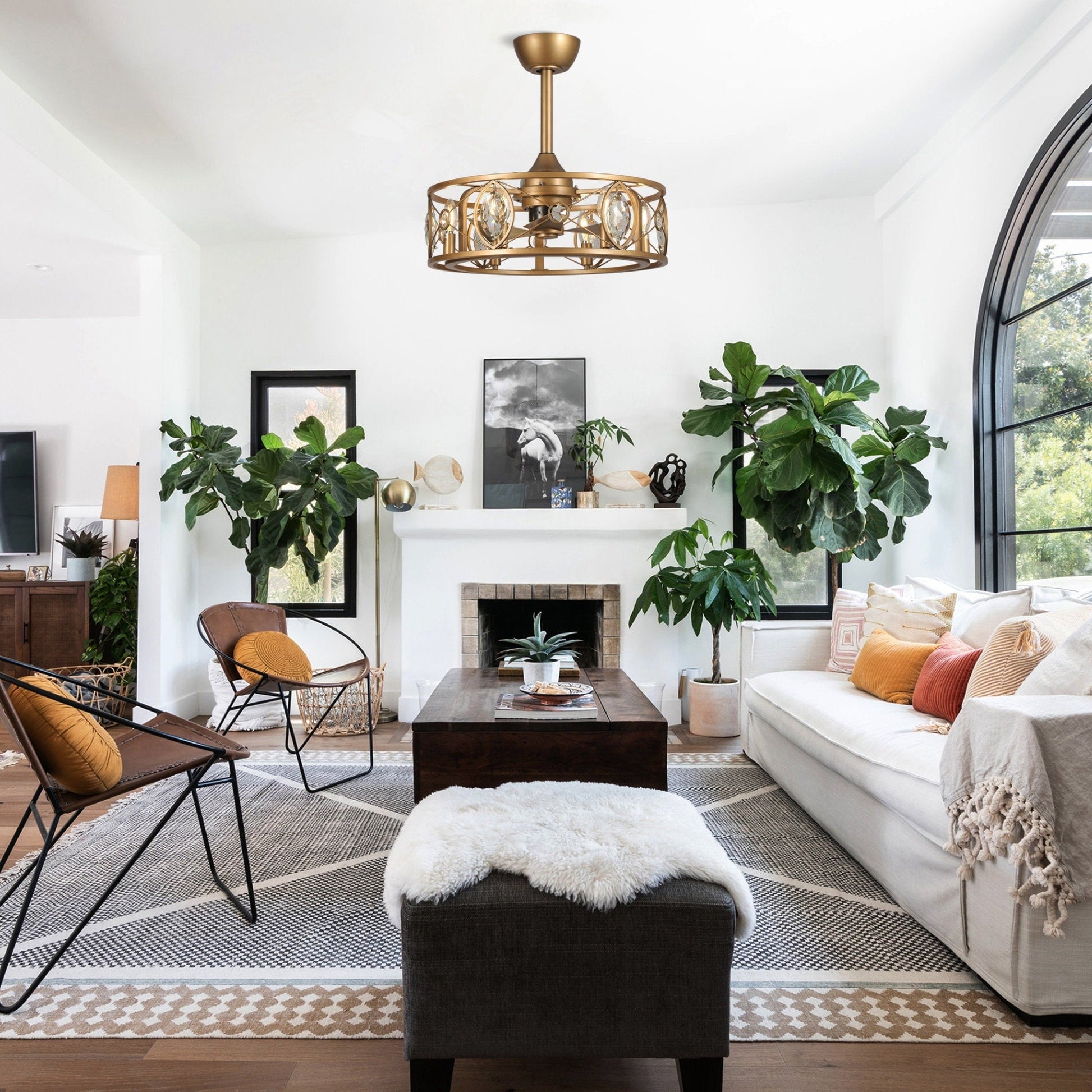 Brighten up and breezy a room with the warm brass finish on this sparkling small crystal ceiling fan is great for providing ambient illumination and cooling down. From the Parrot Uncle comes a 22' ceiling fan that combines elements of modern, farmhouse, and industrial design. It comes in a brass finish frame surrounded by big crystals, which is paired with three brass finish molded ABS blades to add a splash of modern elegance. Combining elements of a ceiling fan and a chandelier, this piece also comes with six LED bulbs (not included) light kits, spread out within the interior of the chandelier fan. Use the included 3-speed full-function remote control to easily set both light and air movement to your standards.