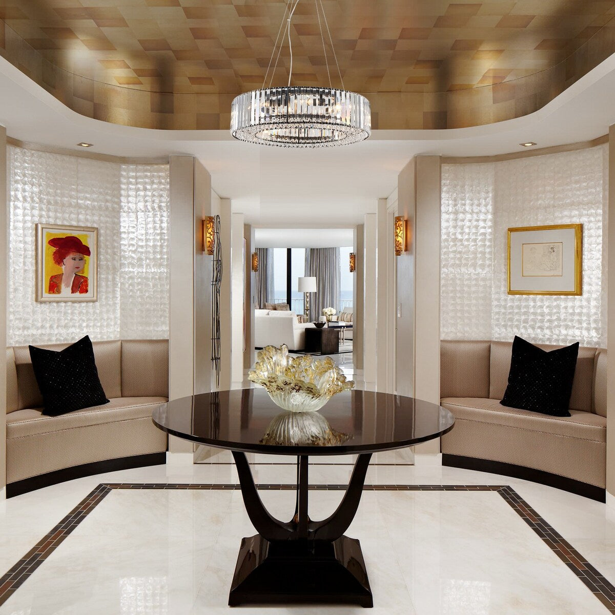 - Elegant Design: Featuring a drum shape crafted from iron and crystal materials, this chandelier exudes elegance and sophistication, adding a touch of luxury to any space