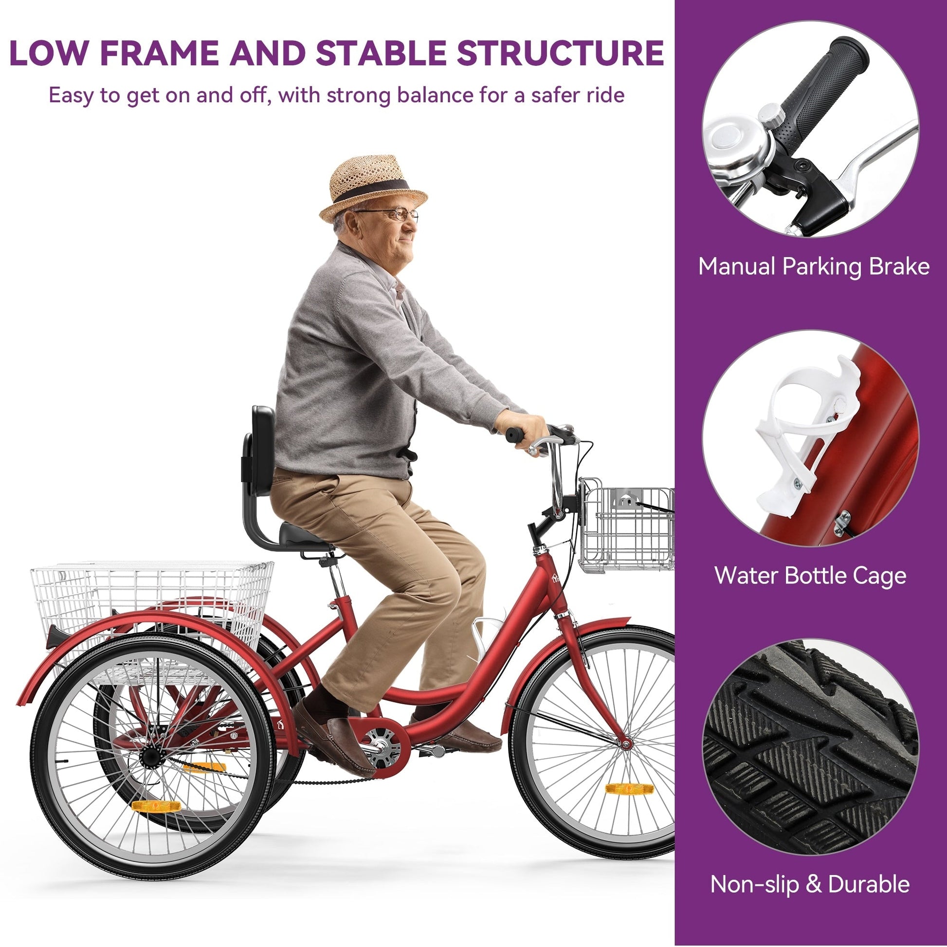 This 3-wheel bike is perfect for casual riding, exercising, home shopping, outdoor picnics, and more. With this trike, you can explore freely, enjoy the ride, and enjoy the sun and fresh air.