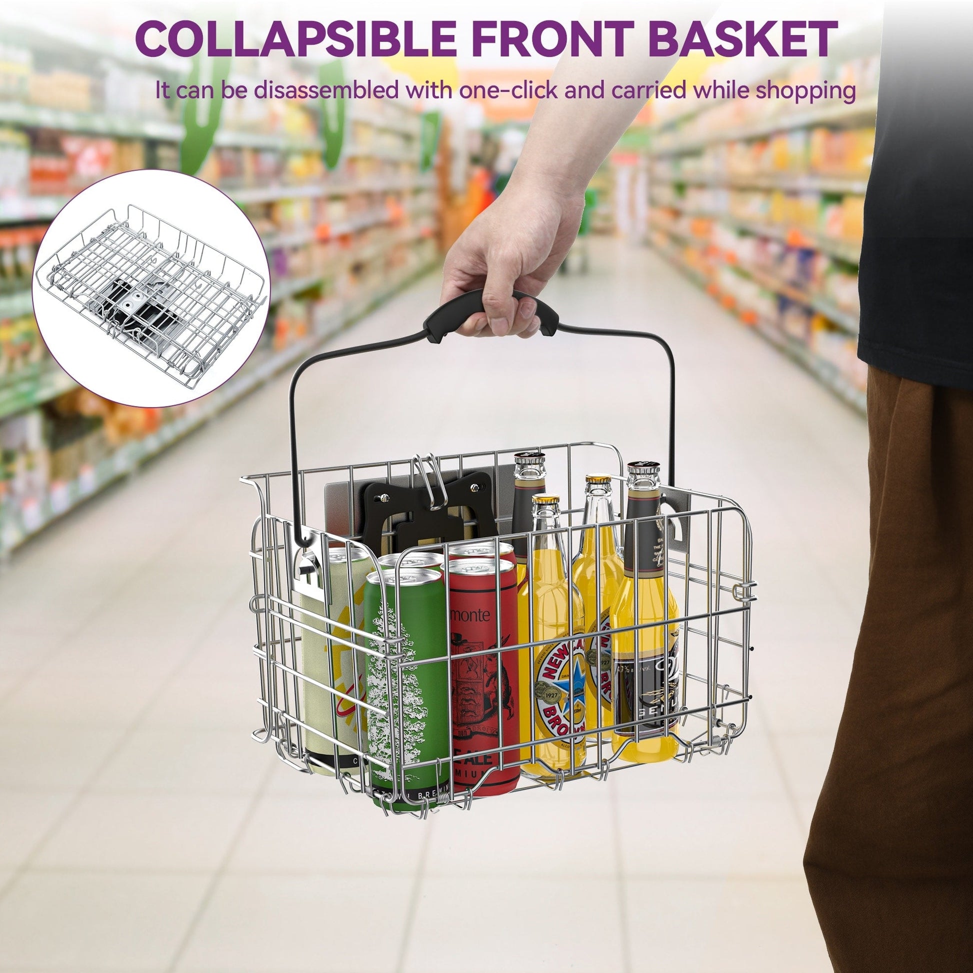 - Sturdy rear basket with a capacity of 55 lbs, perfect for storing groceries and even pets