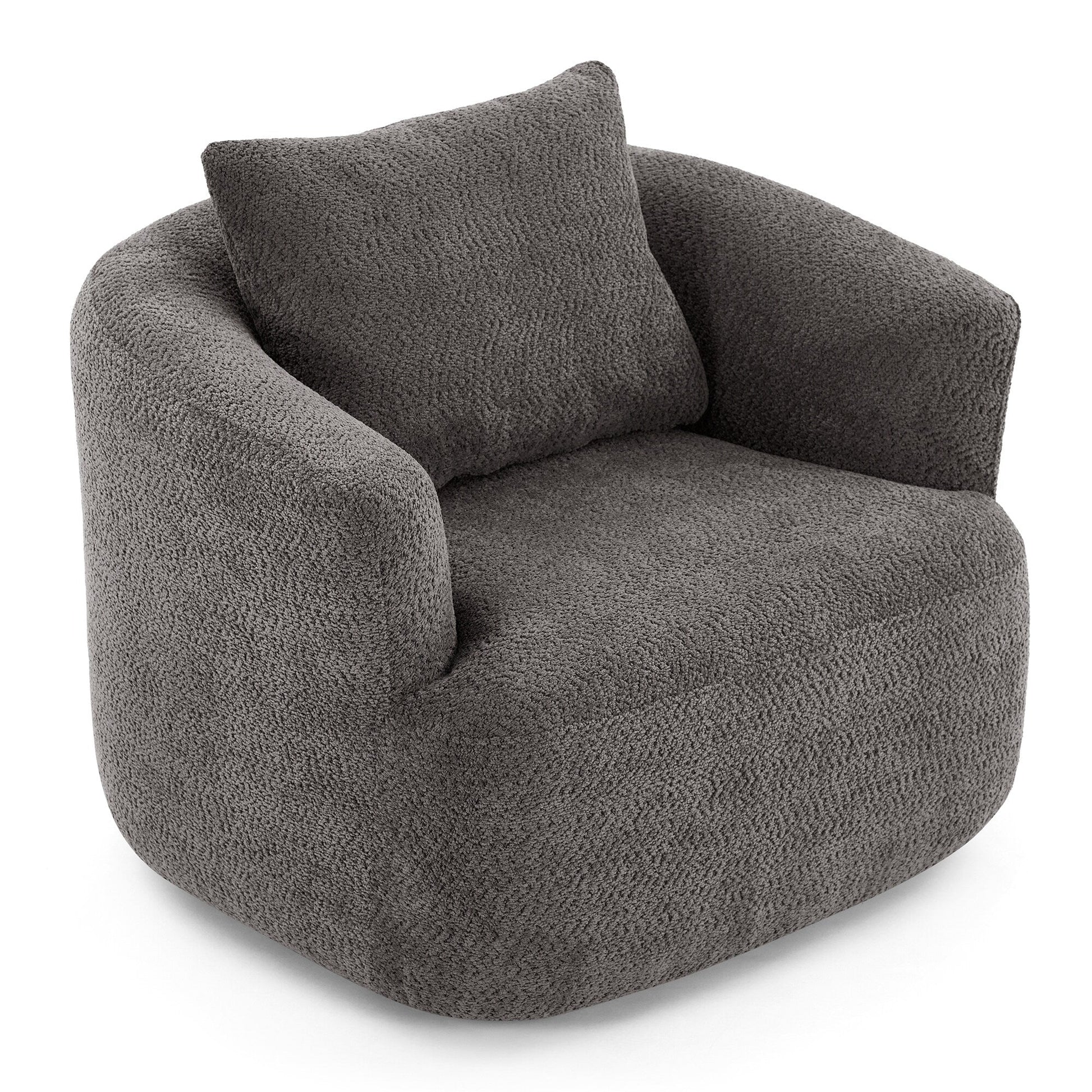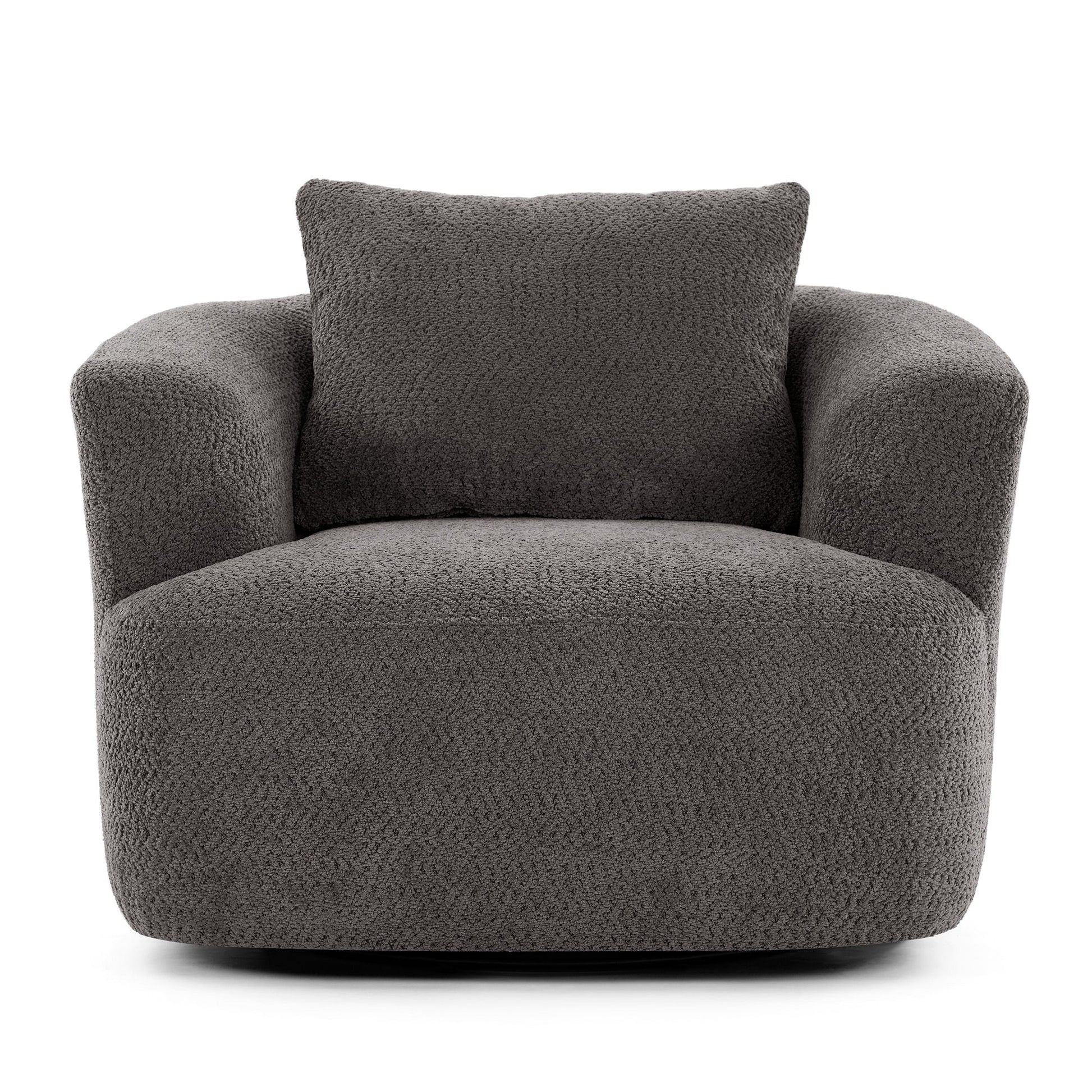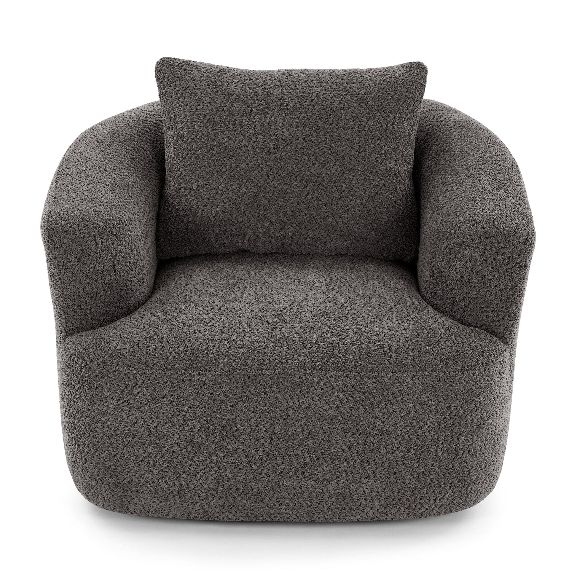 360° Swivel Chair, 38.2 Boucle Accent Chair with Throw Pillow, Upholstered Barrel Sofa Chair with Curved Armrests