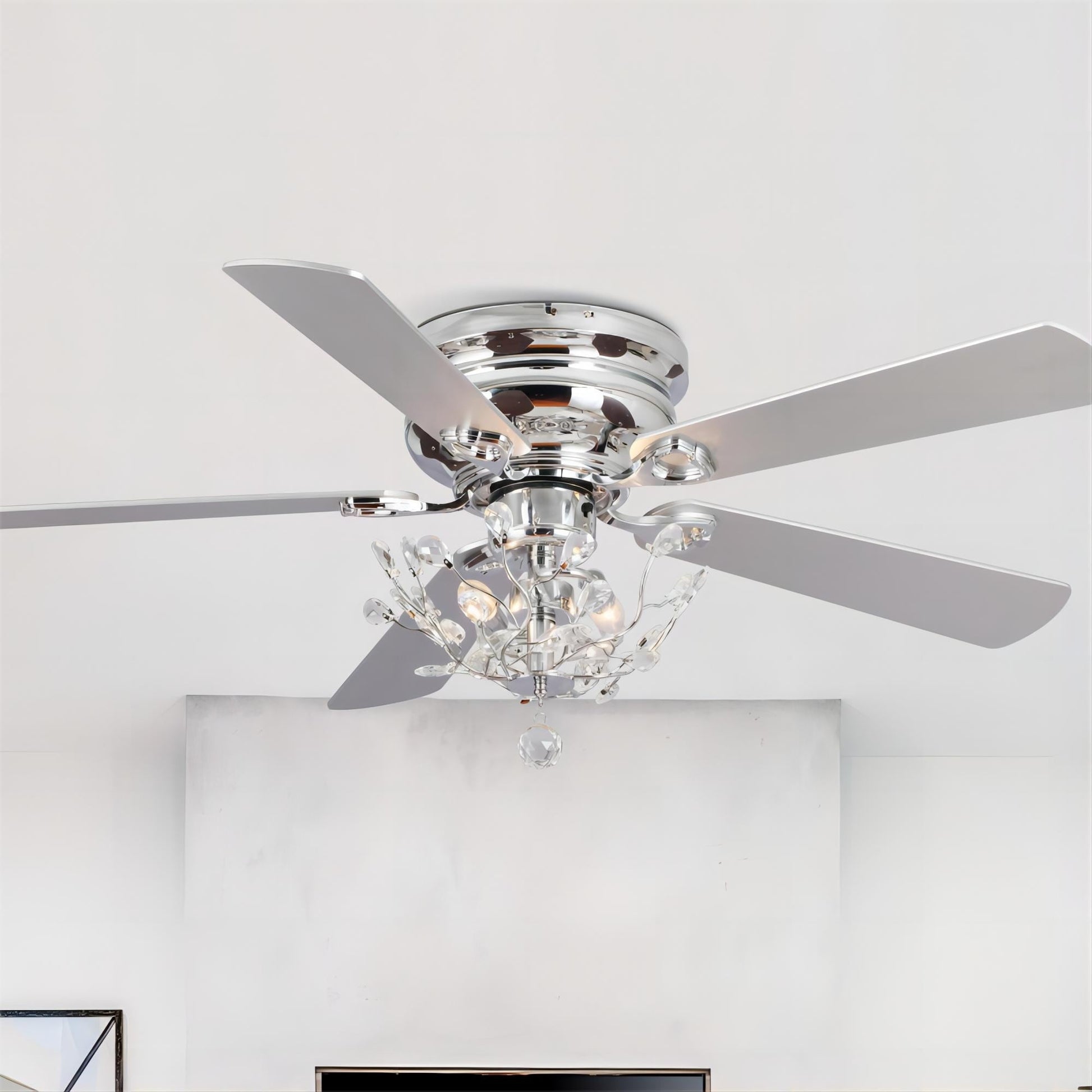 - Modern-style crystal lower-profile fandelier ceiling fan
