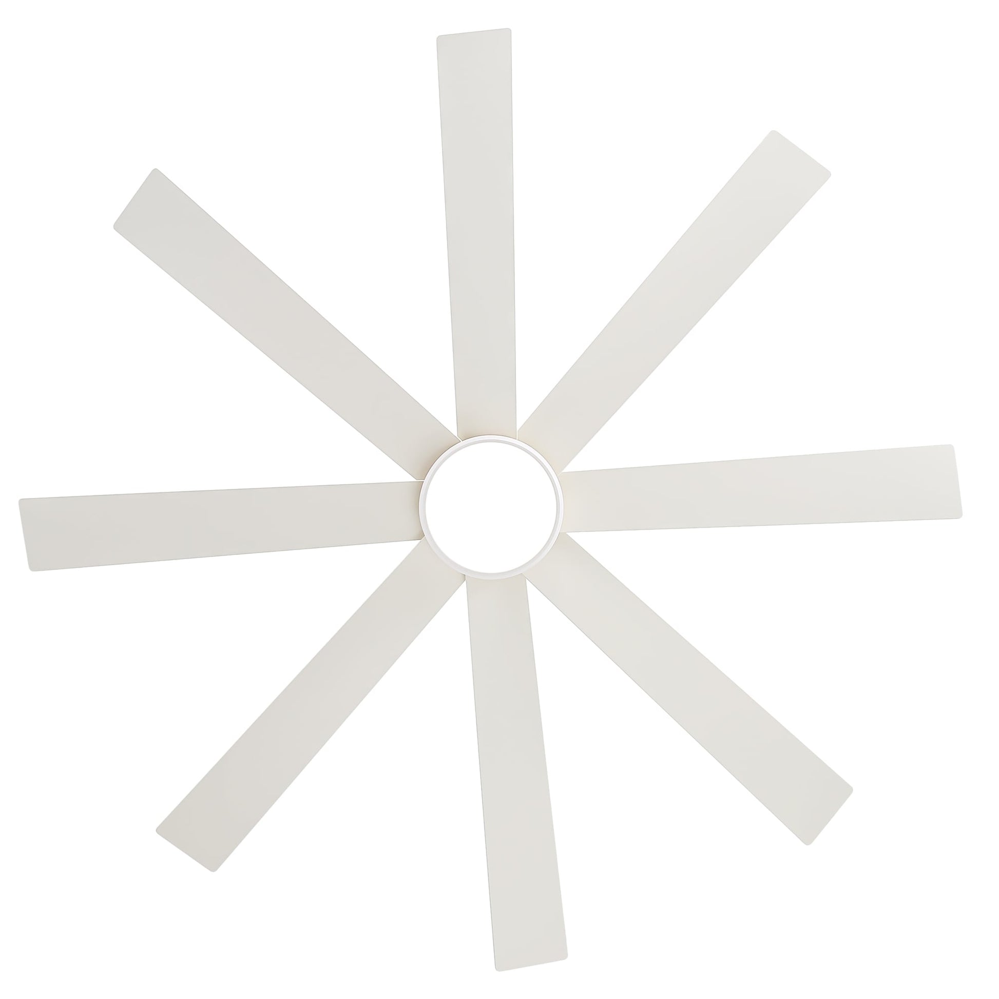 A modern design that performs well in indoor environments, generates a substantial amount of airflow. It is a very big fan with 8 blades and 65 in. blade span. This dry rated and ceiling fan housing is constructed with the durable Plywood blade and metal material. 8 handsome blades are available in white finish featuring reversible and removable. It features a powerful DC motor that runs smoothly and quietly while operating 70% more efficiently than AC motors. The convenient, 6-speed set-up can be controlled locally using the included remote control.