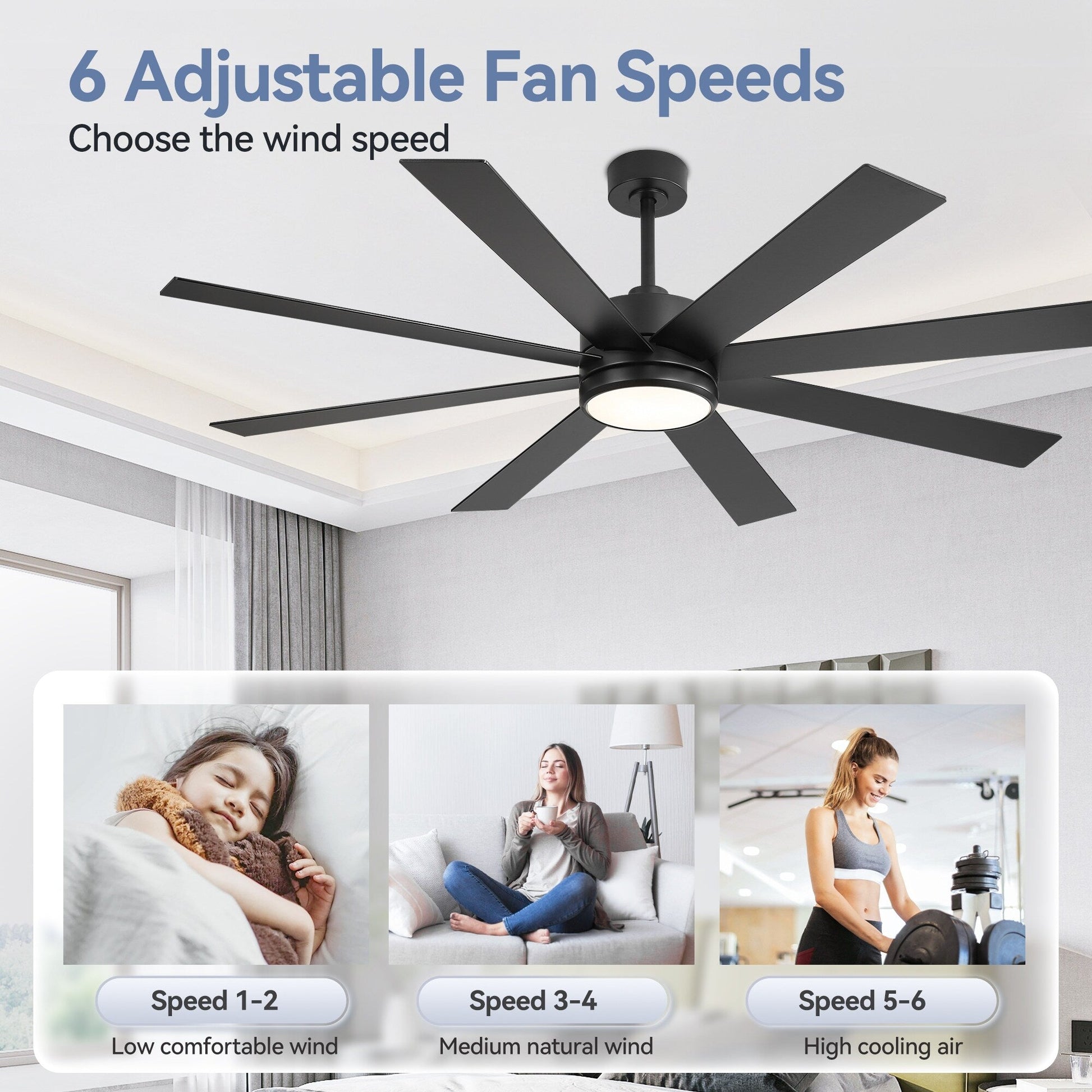 65 Inch 8-Blade Black LED Ceiling Fan with Light and Remote