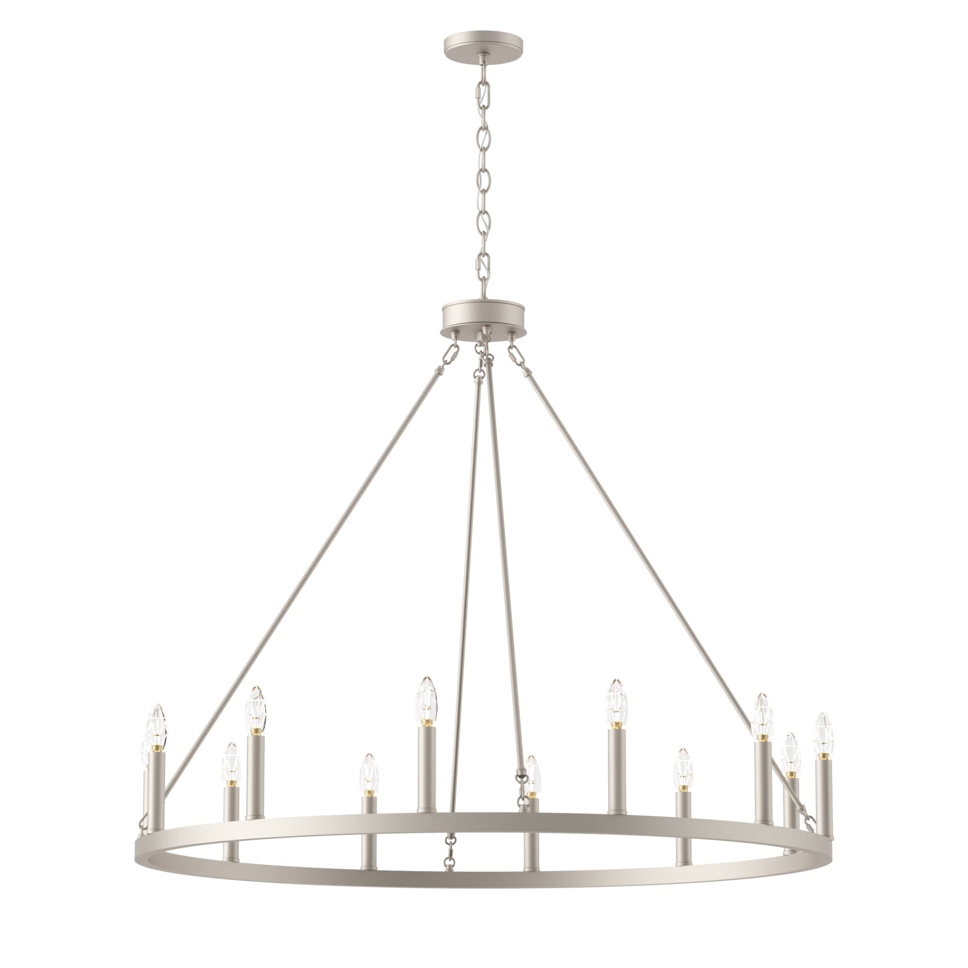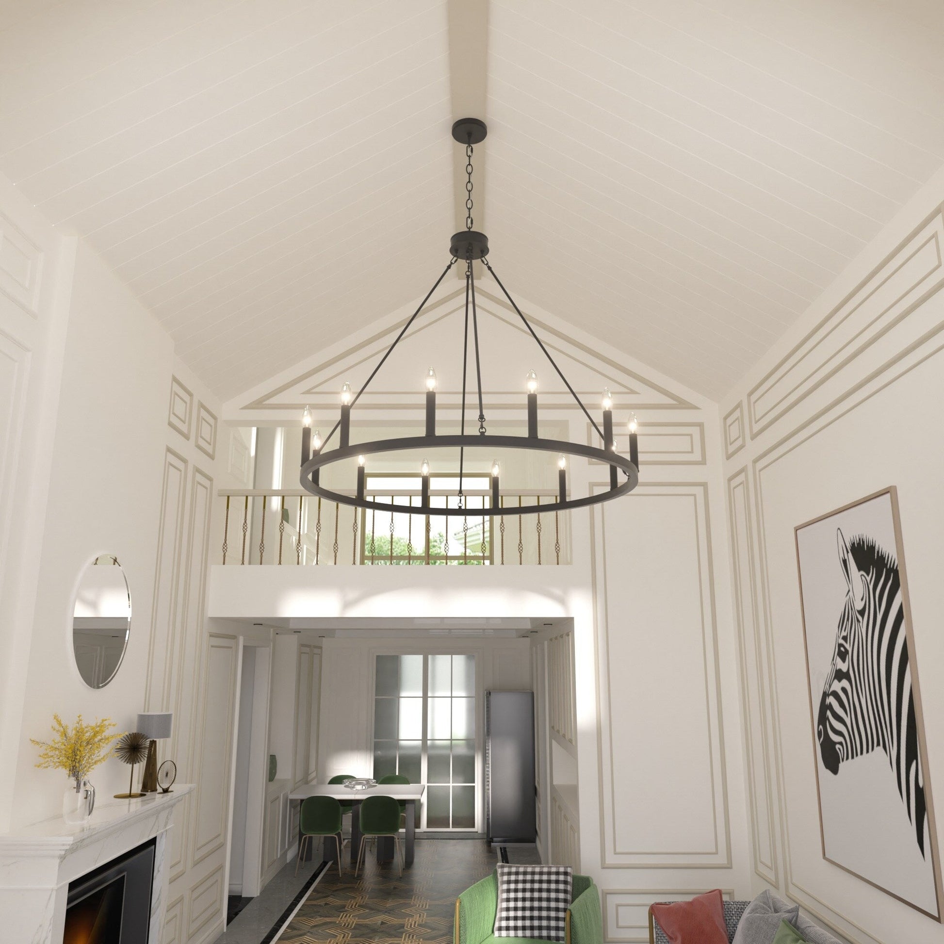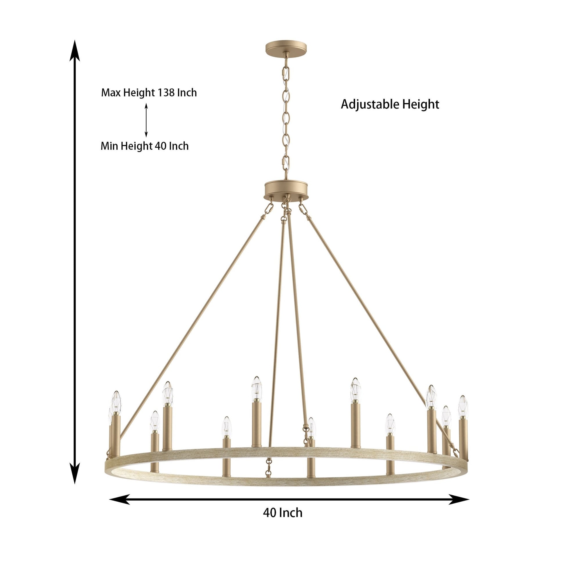 Add a touch of modern farmhouse style to your home with the Wagon Wheel Chandelier. Crafted of premium steel and finished in various color for fitting various style like modern farmhouse, french country, and coastal. With a large size in 40'', this candle chandelier is perfect for living rooms, foyers, staircases, hallways, dining rooms, and bedrooms. Comes with 96'' long chain, the modern farmhouse chandelier height is adjustable from 40' to 138', ideal for normal and high ceiling, and sloped ceiling also compatible as that gives you versatile options for placement. With 12 candle-style holders (candelabra bulbs sold separately) are exposed, so they can give off a boost of brightness and light.