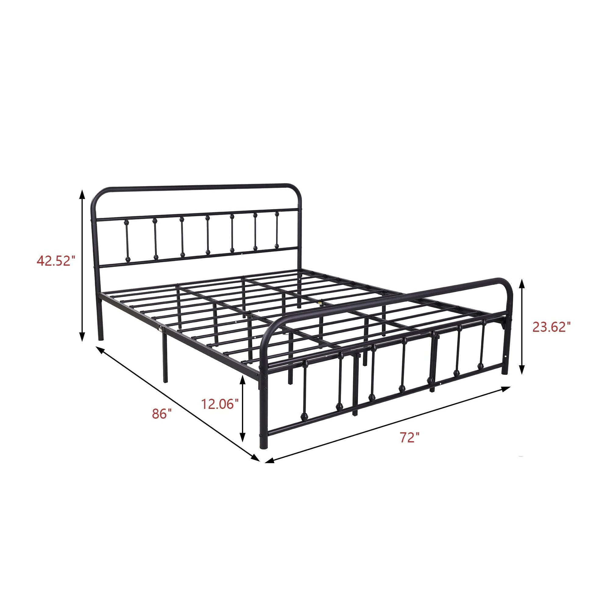 Upgrade your bedroom with the Alazyhome Simple Vintage Metal Platform Bed Frame. This vintage-style and simple-color bed frame easily blends with bold colors and accessories to give your room a refreshed look. Suitable for all ages, this bed frame eliminates the need for a box spring and is designed with durable metal slats that extend the life of your mattress, while the additional center leg provides ample support for a comfortable night's sleep. All necessary parts and tools are included in one box, allowing for easy assembly and disassembly. With 12 inches of storage space beneath the bed frame, it helps keep your room neat and tidy.