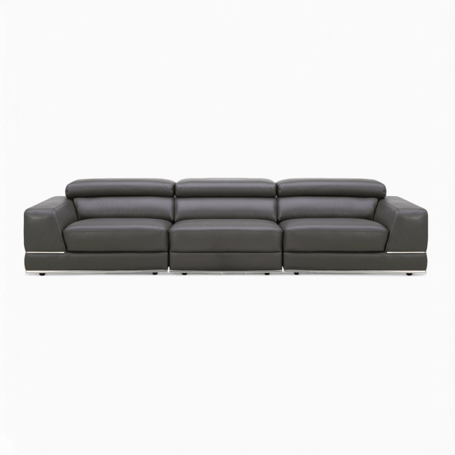 Indulge in luxury and style with the Amadeo 3-Piece Modular Sofa in Elephant Gray, where sophistication meets comfort in perfect harmony. Wrapped in sumptuous Italian leather upholstery, the Amadeo sofa boasts a timeless appeal, offering both durability and unmatched comfort. Wrapped in plush dark gray leather upholstery, the Amadeo sofa exudes a sense of understated elegance. The rich hue adds depth and character to the room, making a bold statement in any interior setting. Enhancing your comfort further, the Amadeo sofa comes equipped with manually adjustable headrest and seat slider on the end seats, allowing you to customize your seating experience to your preference.