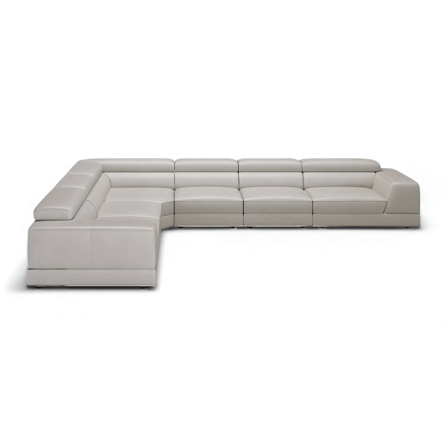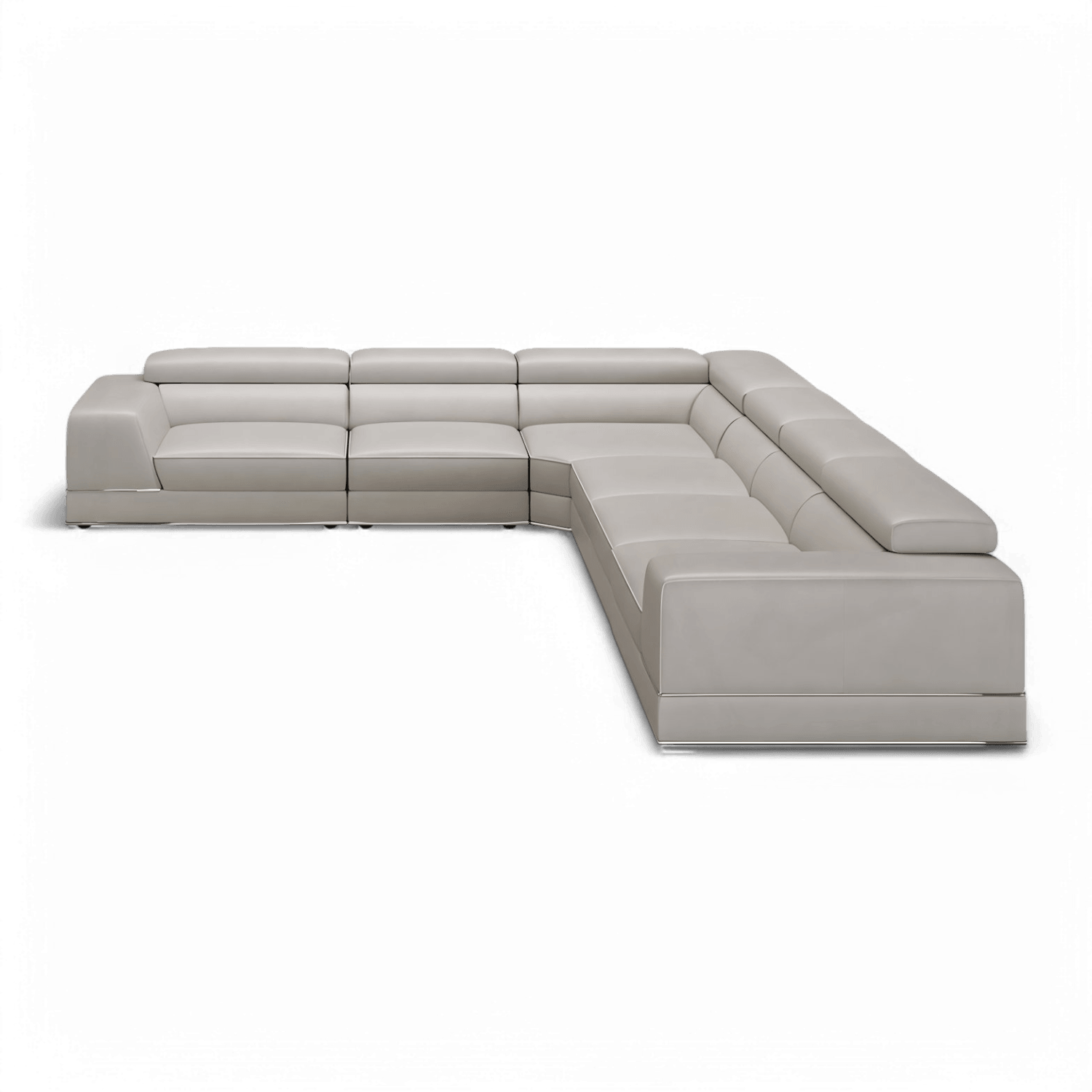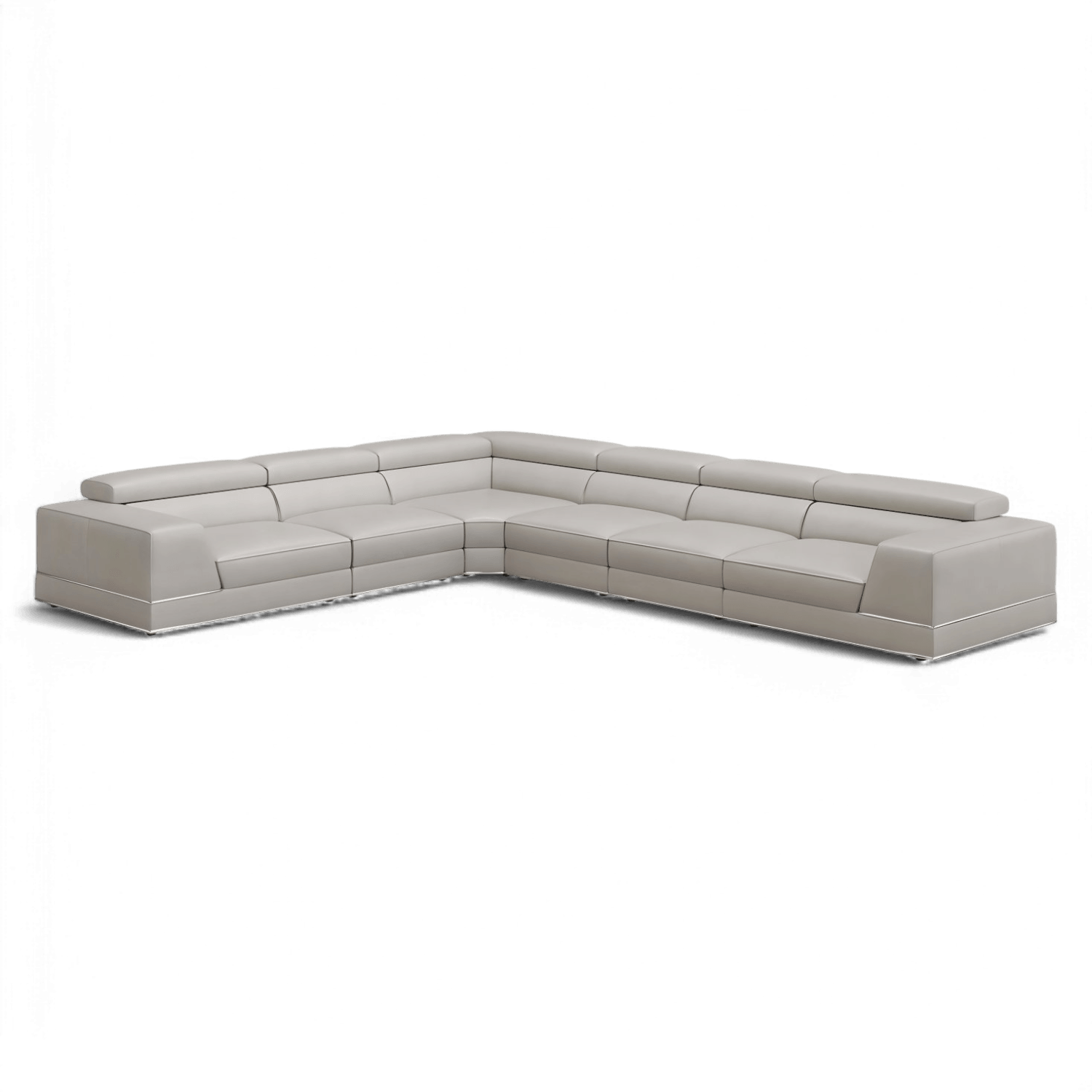 Indulge in luxury and style with the Amadeo Extended Modular Sectional Sofa in Light Gray, where sophistication meets comfort in perfect harmony. Wrapped in sumptuous Italian leather upholstery, the Amadeo sofa boasts a timeless appeal, offering both durability and unmatched comfort. Enveloped in sumptuous light gray leather upholstery, the Amadeo sofa exudes a refined charm while offering a soft and inviting feel. Enhancing your comfort further, the Amadeo sofa comes equipped with manually adjustable headrest and seat slider on the end seats, allowing you to customize your seating experience to your preference.