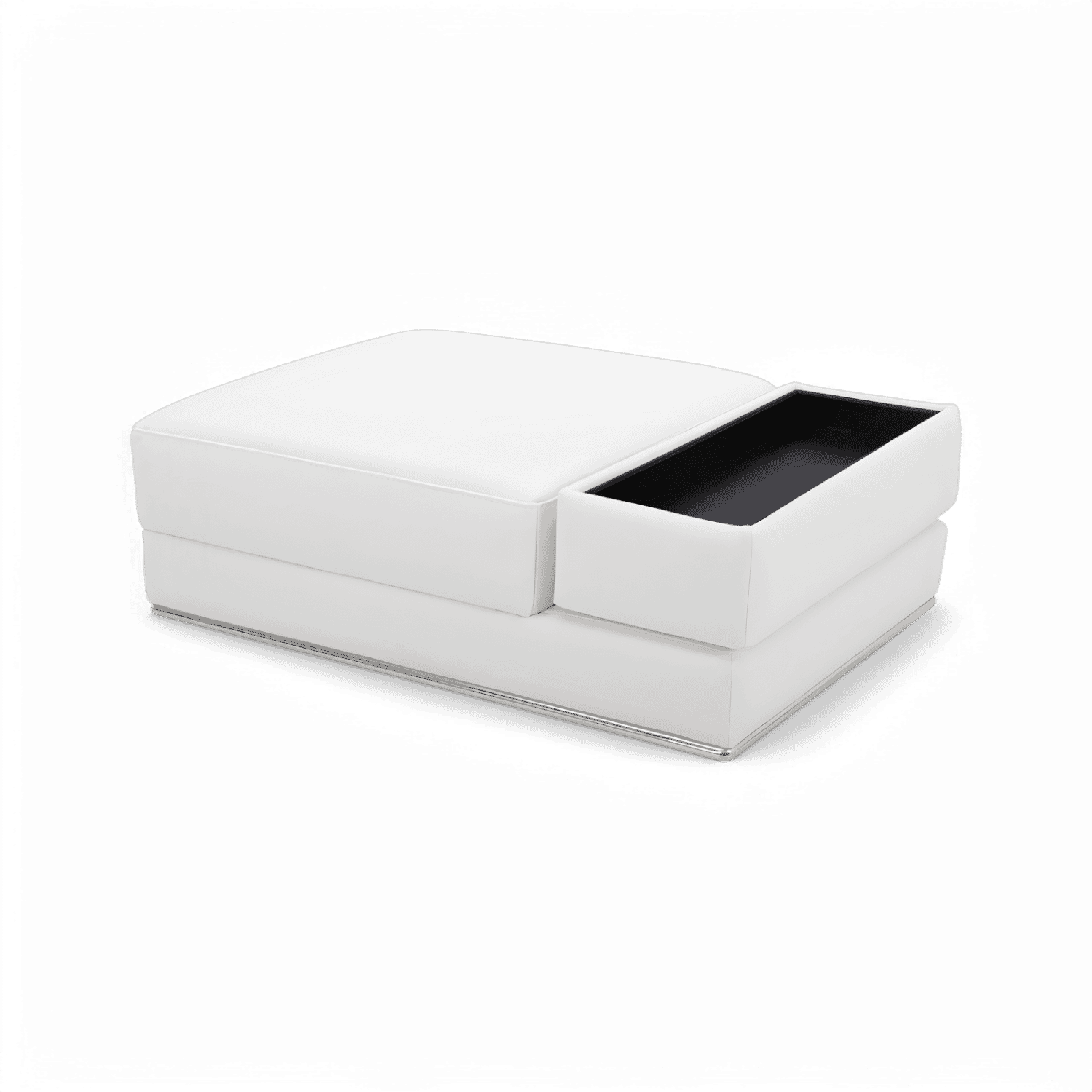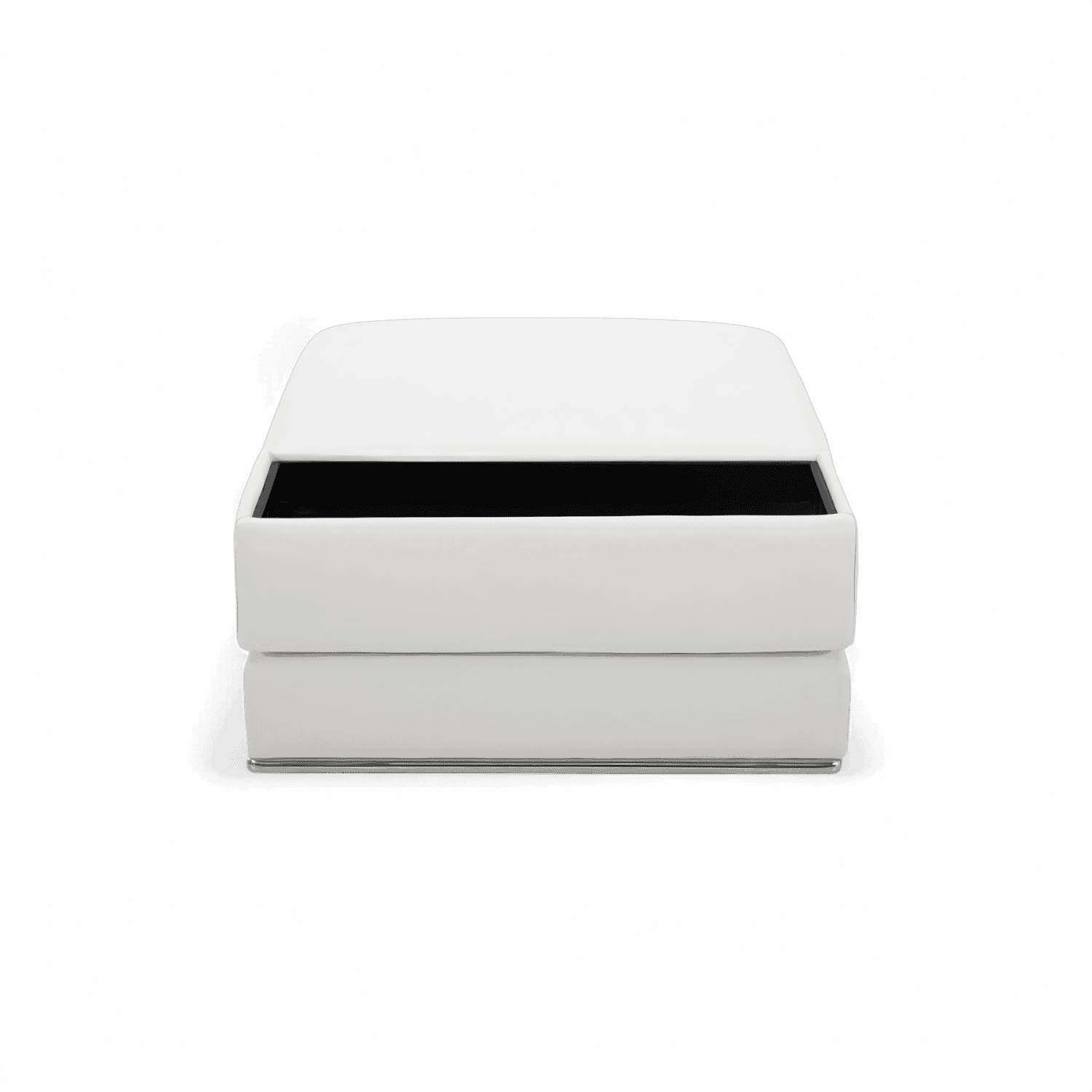 The Amadeo Ottoman in White is a perfect complement to the Amadeo Modular Sectional Sofa, showcasing a seamless blend of luxury and functionality. Upholstered in premium Italian leather and plush cushioning, this ottoman exudes sophistication and timeless elegance. The Amadeo Ottoman also features a top storage compartment, providing a stylish solution for keeping your living space tidy and organized. Whether used as a footrest, additional seating, or a chic coffee table alternative, the Amadeo Ottoman enhances any living space with its refined design and versatile functionality.