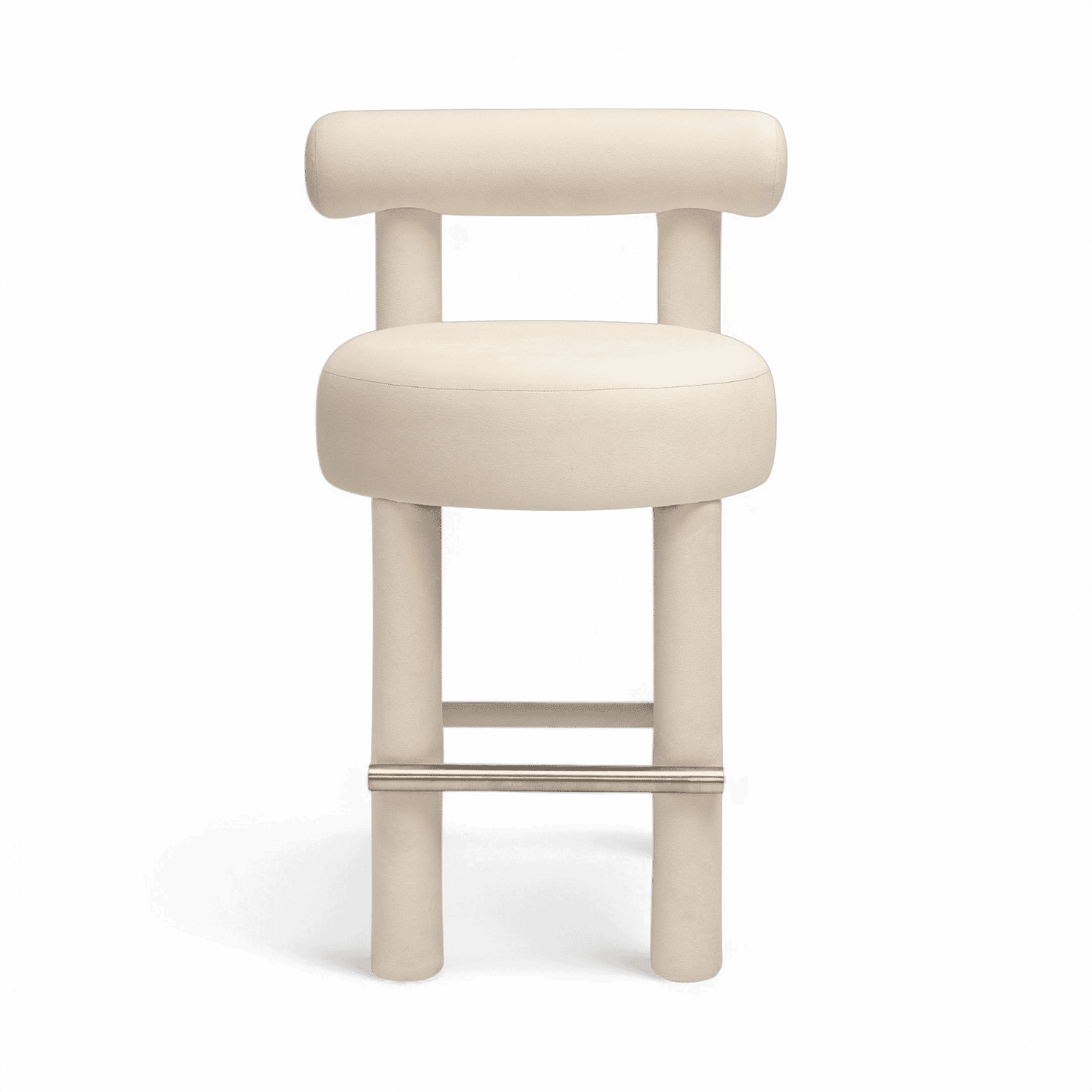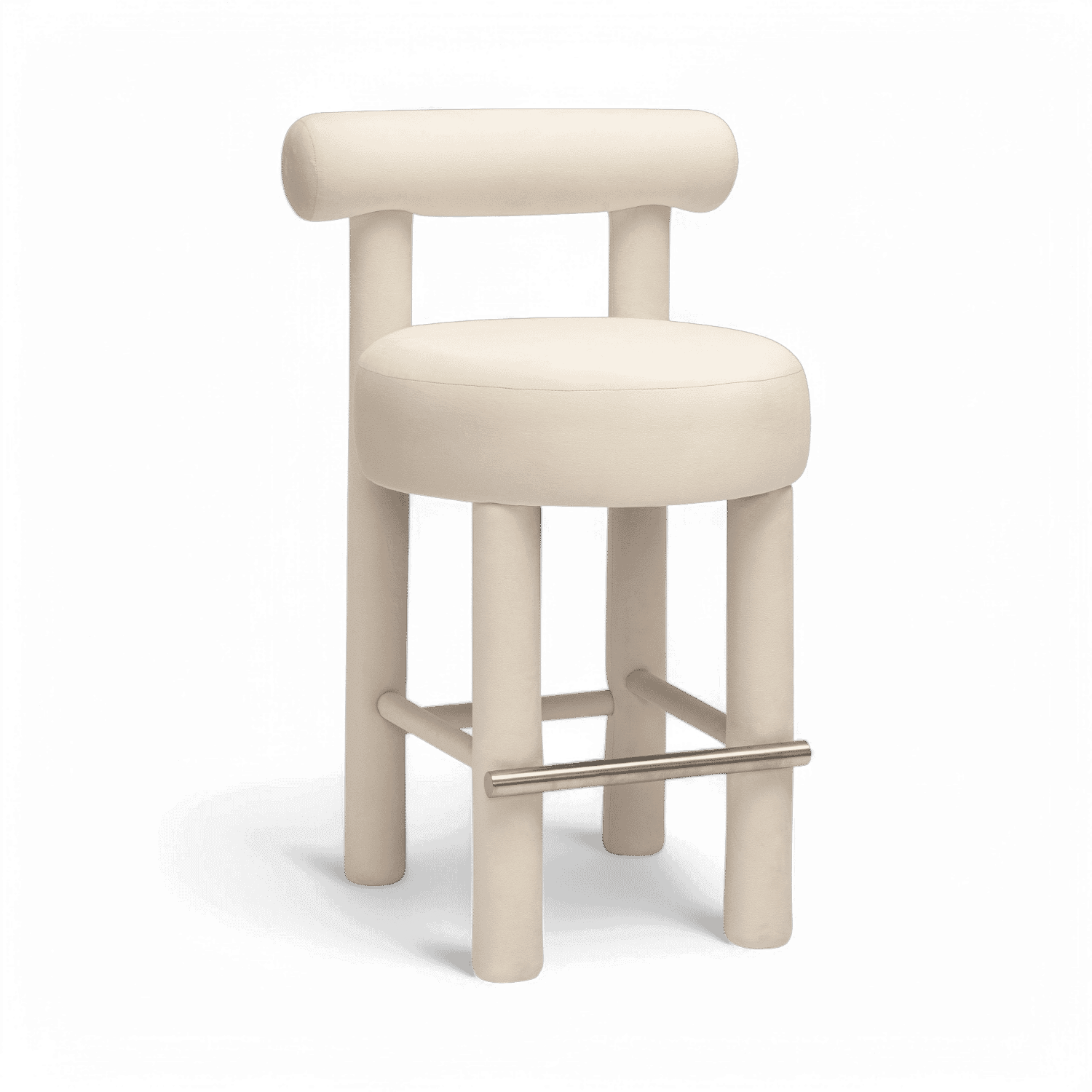 Enhance your kitchen or bar area with the Arch Cream Velvet Counter Stool. Its velvet upholstery and sleek design provide both comfort and elegance for any space.