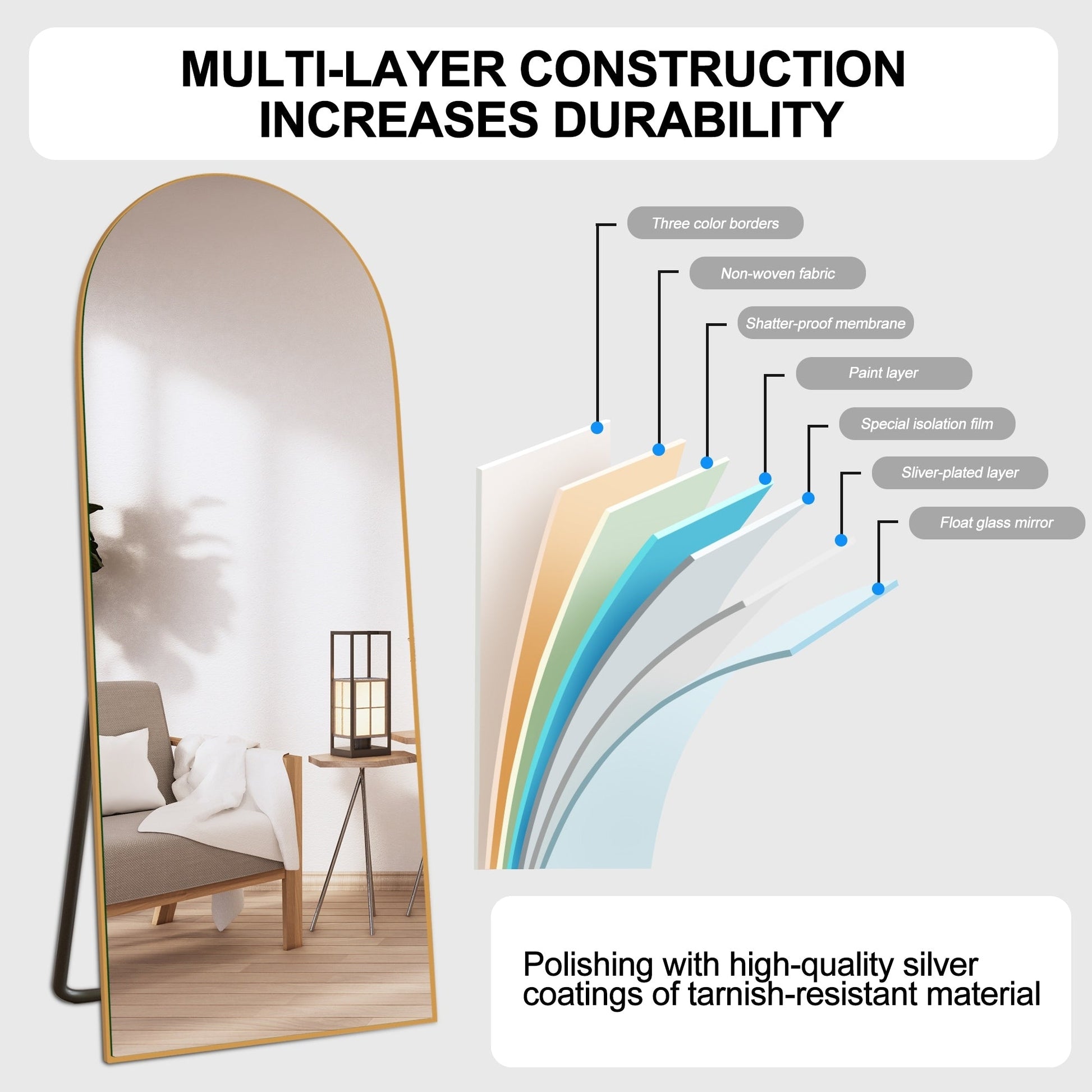 The arched floor mirror adopts anti-splash and explosion-proof membrane, which can prevent scratches when the glass is accidentally hit, enhance safety for you and your family.