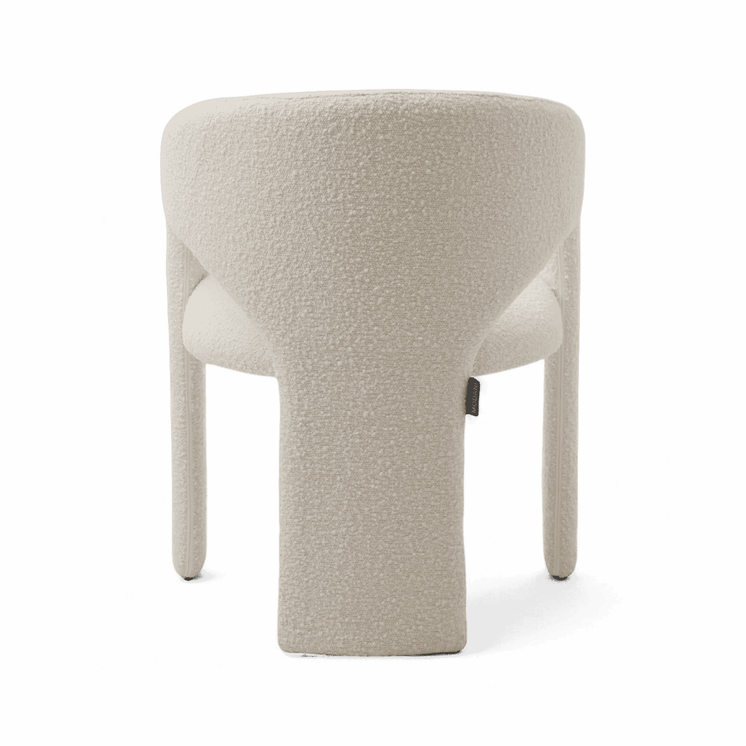 The Aria Dining Chair is a sleek, modern piece that combines contemporary design with functional elegance. Its rounded backrest that cradles the body, offering comfort and style in equal measure. With three subtly tapered legs, the chair boasts a bold silhouette with a larger back leg for added stability. The entire chair is luxuriously upholstered in rich ivory boucle fabric, providing a soft, textured surface that enhances its sophisticated appeal. Perfect for dining spaces or accent seating, the Aria Dining Chair is a statement of minimalist charm and refined craftsmanship.