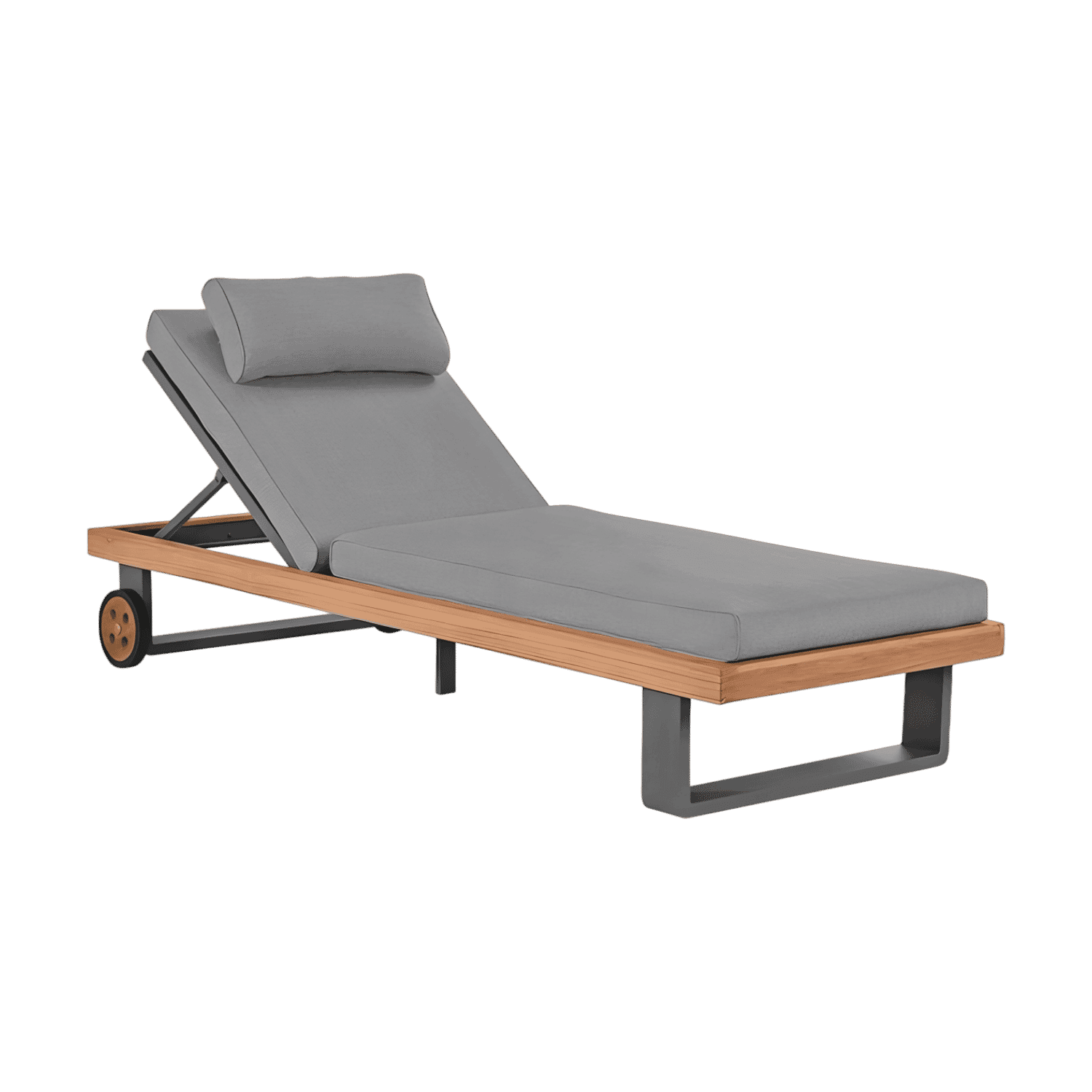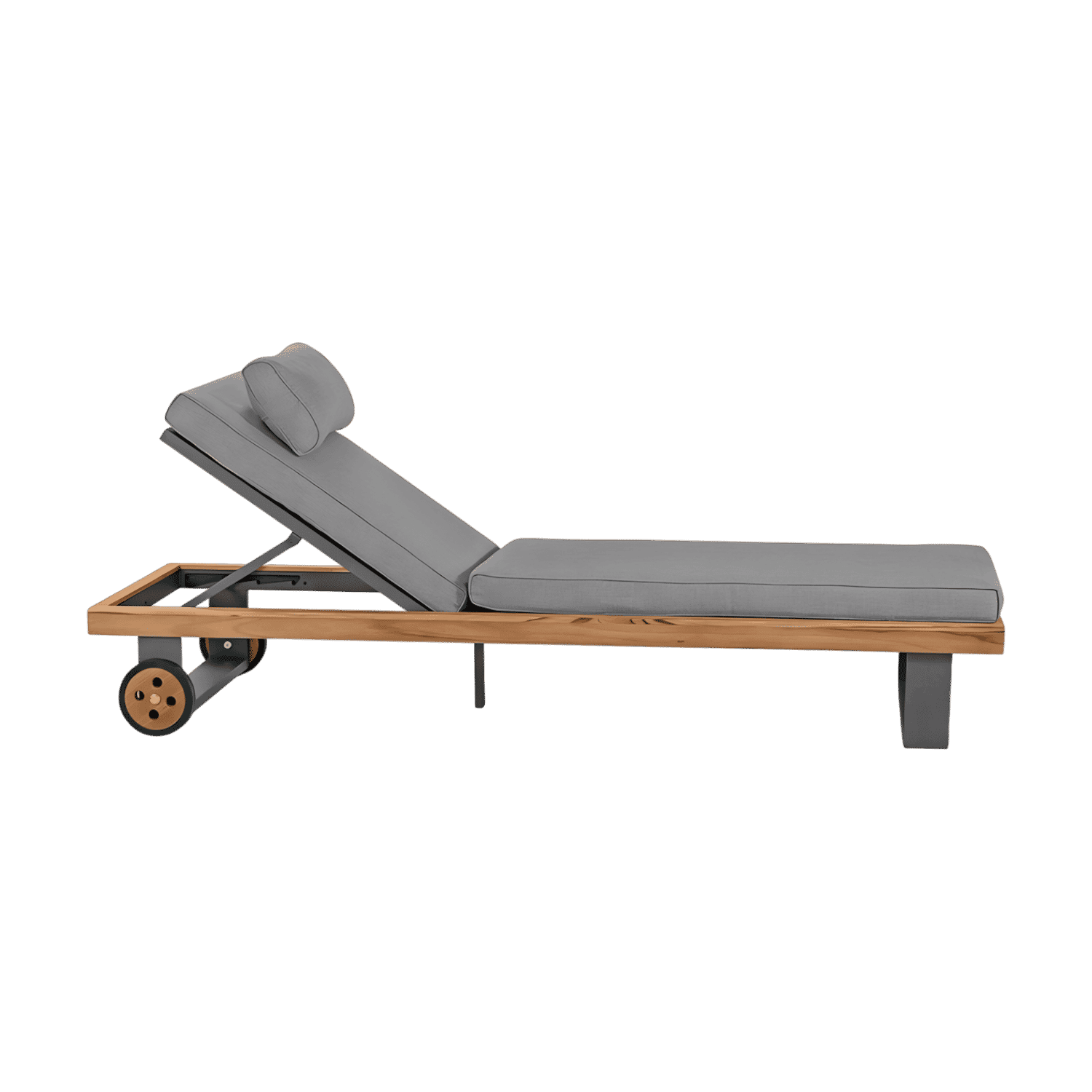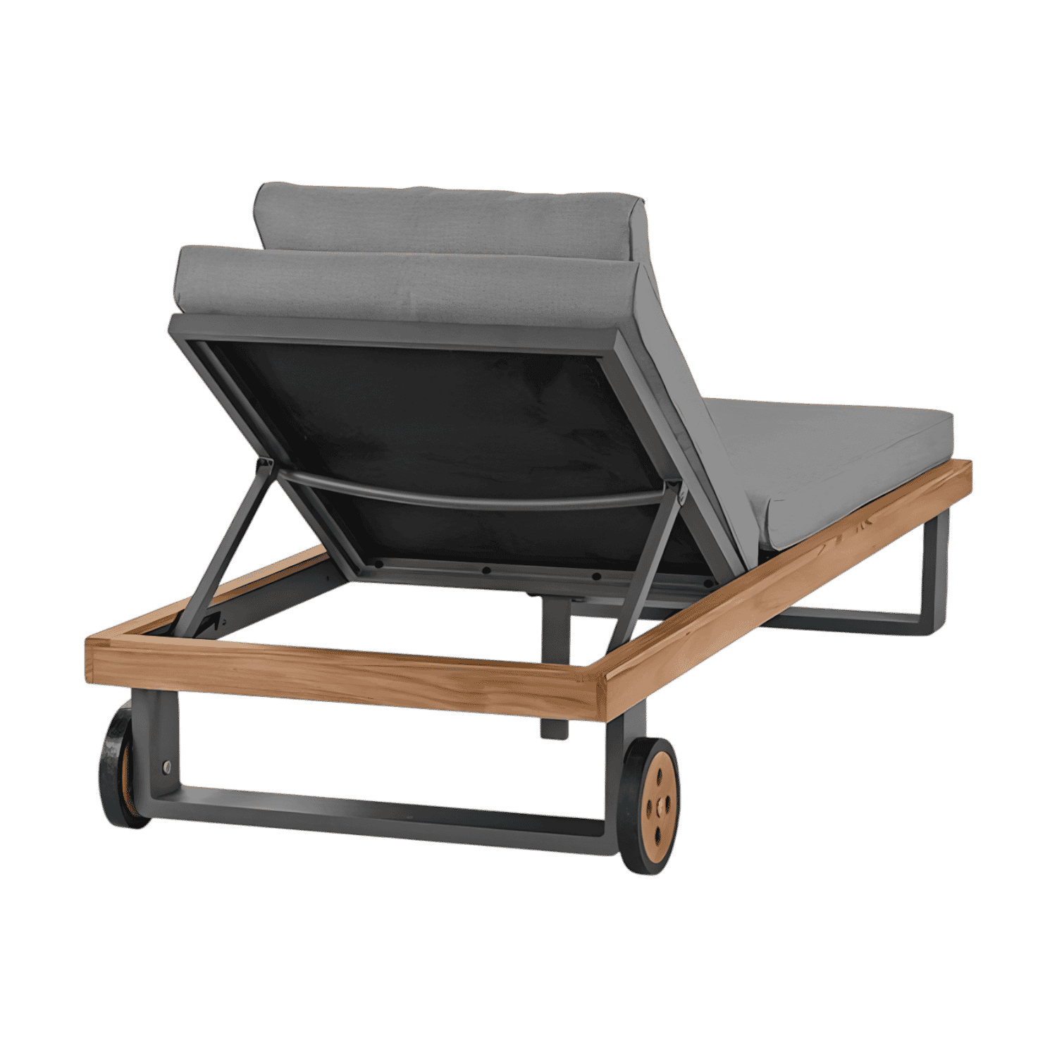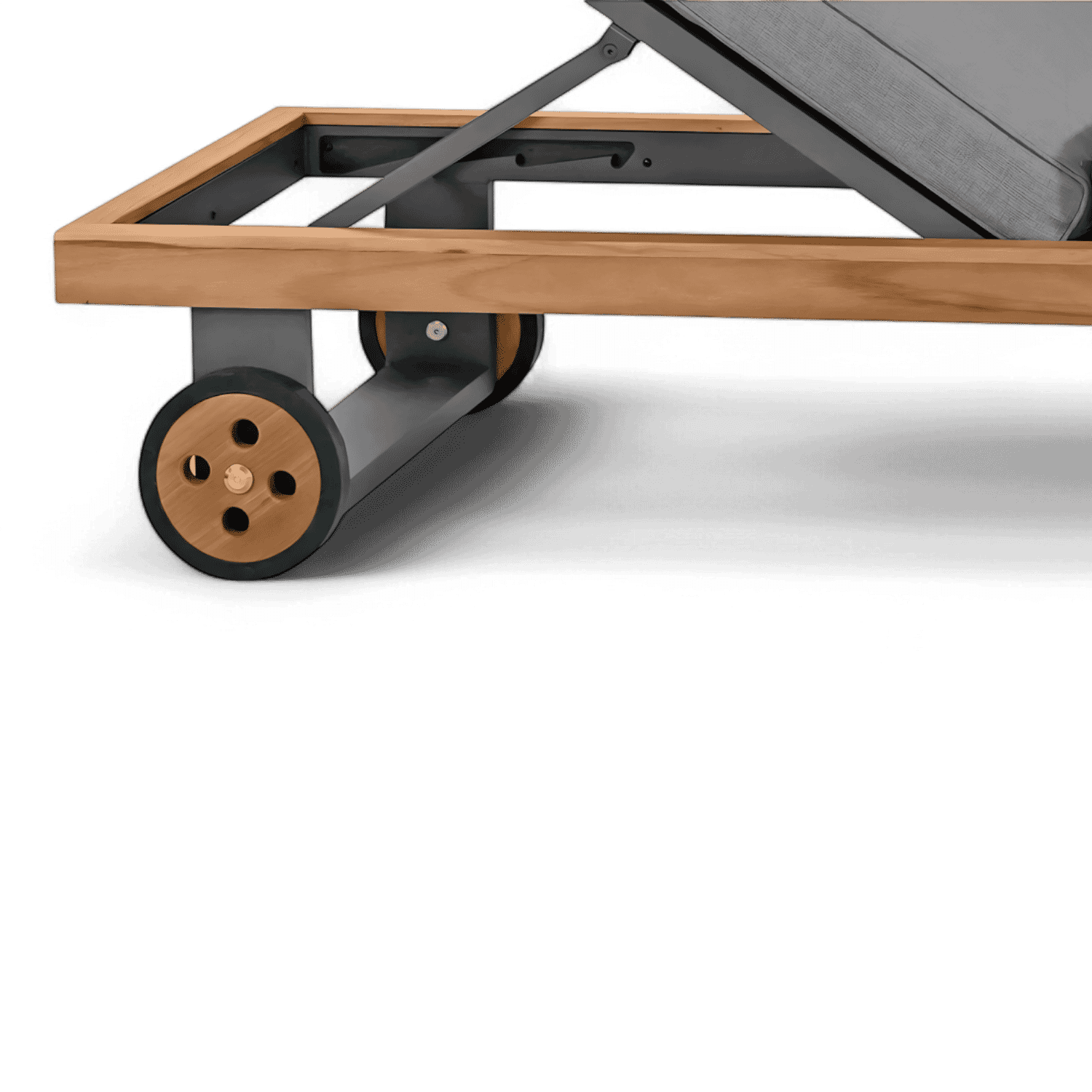 Solid Teak Wood | Powder Coated Aluminum | Polyester Outdoor Resistant Fabric, Foam | Weight Capacity: 350 lbs.
