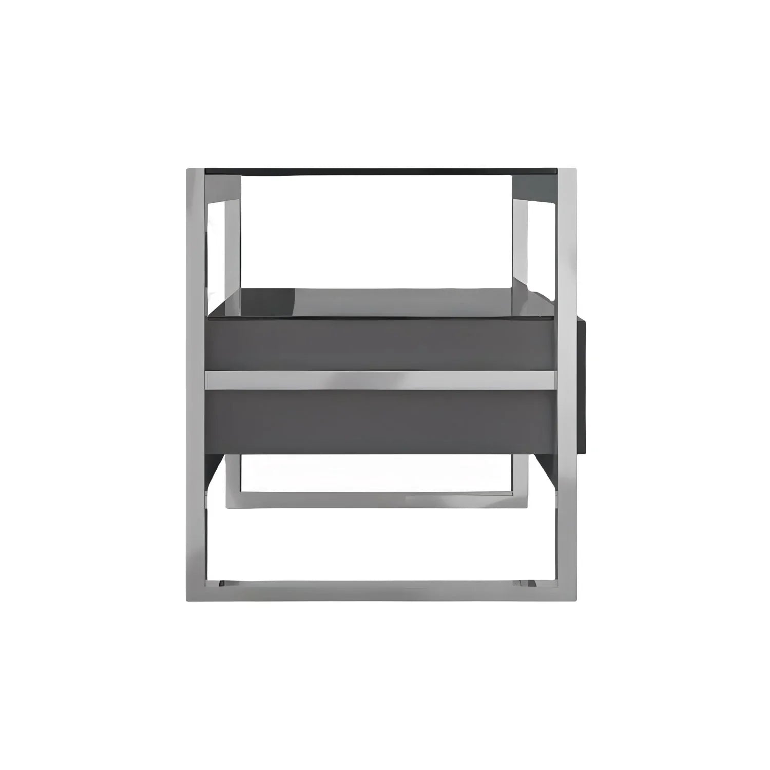 The Bari Nightstand Gray is ideal to be used alongside platform beds because is designed to rest very close to the floor. Since every bedroom needs at least one side table, the petite beautifully crafted stainless steel item is adorned with tempered glass and sleek style. A pure gray finish adds a cosmopolitan and vibrant look. Purchase one or a set and pair it with the Bari Dresser.