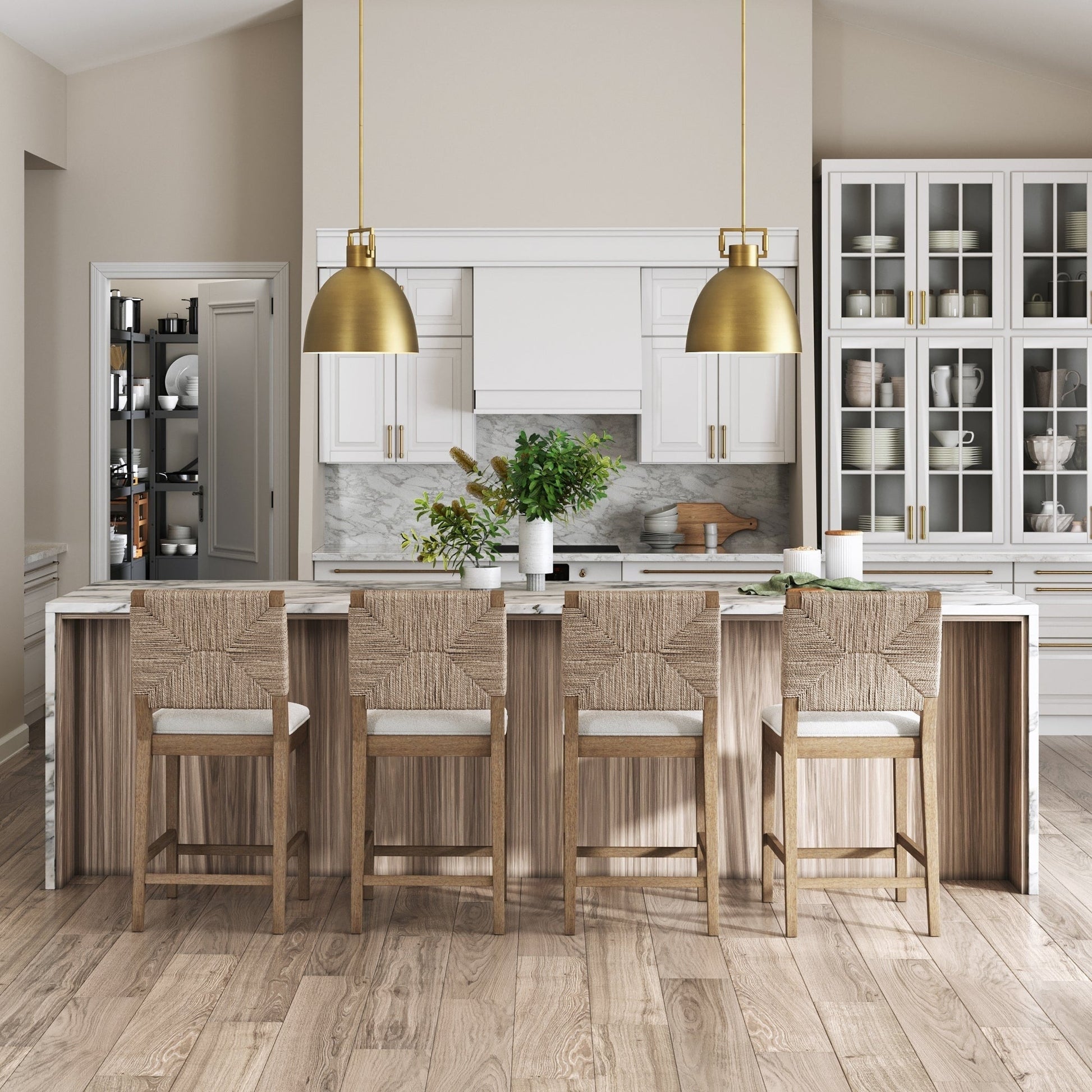 Our Beacon bar stool is a natural beauty! The seagrass woven backrest evokes a breezy seaside feel, making this bohemian bar stool an eye catching addition to your space. The counter height chair is a great companion for your kitchen island or bar, be it for a casual dinner or a laid back wine night. It also highlights a textured boucle linen upholstery over a plush foam seat for that endless hours of comfort. Beacon isn't just a pretty upholstered stool because we made sure it's functional by crafting it with a sturdy solid wood frame for durability. The wire brushed natural brown frame also brings a timeless touch to your home! Whether you're sipping your morning coffee or enjoying a late night snack, the Beacon bar stool has literally got your back. And if you're into that whole matching vibe, think about teaming it up with some other cool pieces from our Beacon collection for a put-together look!
