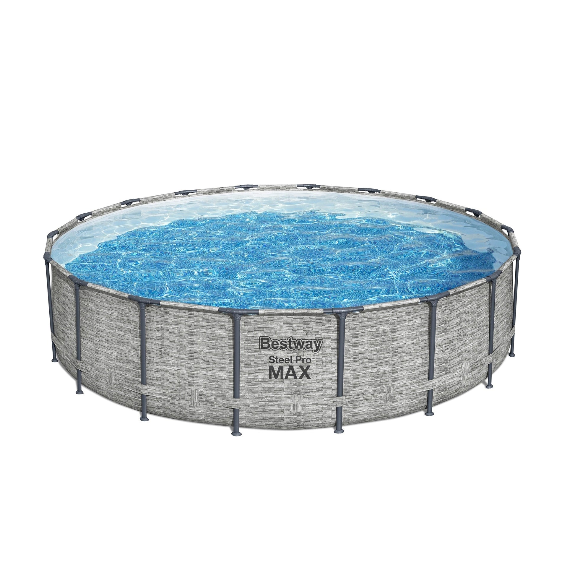 It doesn't get any better than having your own backyard pool! Enjoy a summer full of fun with the Bestway Steel Pro MAX Above Ground Swimming Pool. Featuring an ultra-durable construction, this outdoor swimming pool is made with a corrosion-proof steel frame equipped with a FrameLink System for a sturdy and secure connection. The frame is compatible with additional attachments, such as cup holders (sold separately). With a DuraPlus liner, this pool is reinforced for strength and prevents punctures. Including a filter pump, ladder, and pool cover, you'll have everything you need for the perfect pool day. Equipped with a simple setup and take-down process, you can easily store this pool away in the off-season. No tools are required, and a hose connects to the built-in flow control valve to quickly and efficiently drain out the pool water. Spend your hot summer days in the water with the Steel Pro MAX Above-Ground Swimming Pool from Bestway. Disclaimer: Please review your HOA rules and restrictions before purchasing this product. Not all housing agencies permit private above-ground pools.