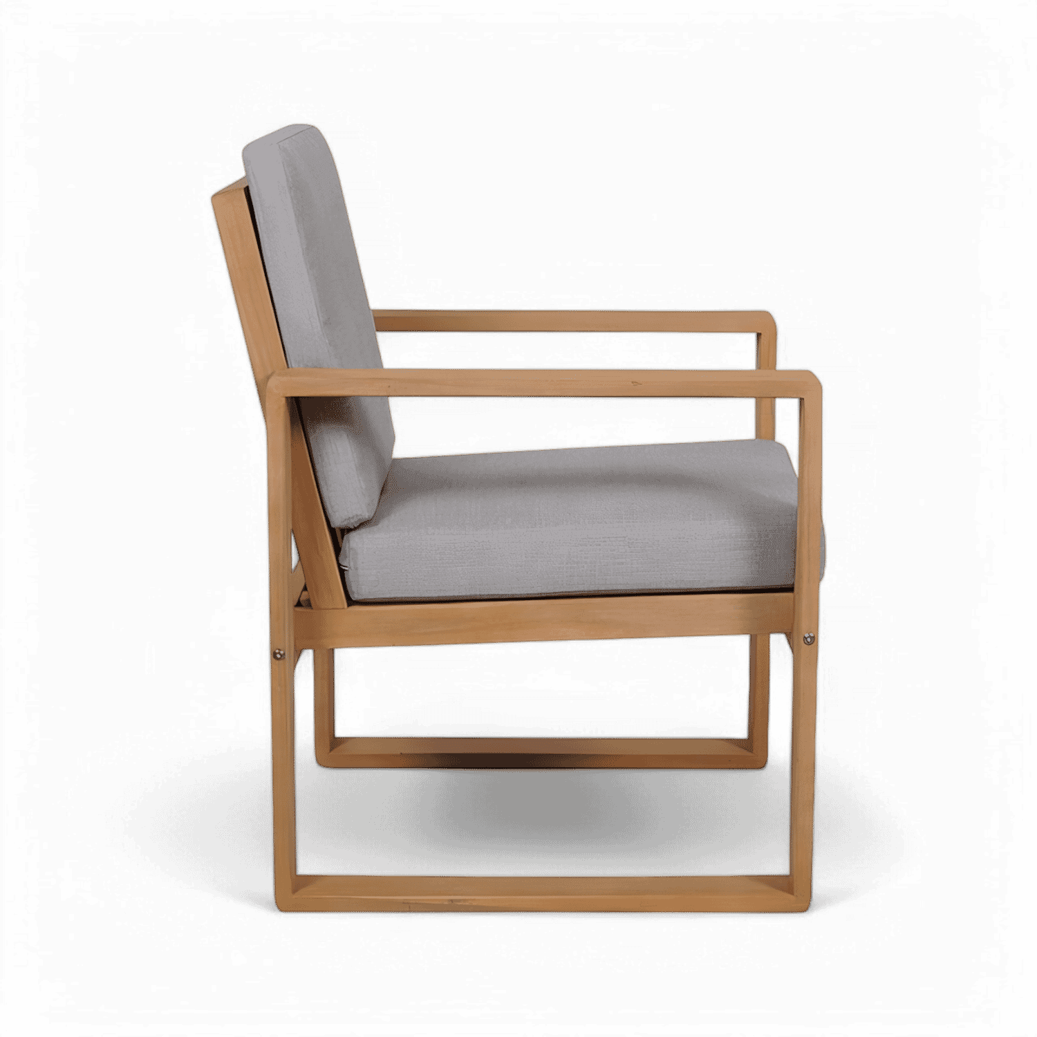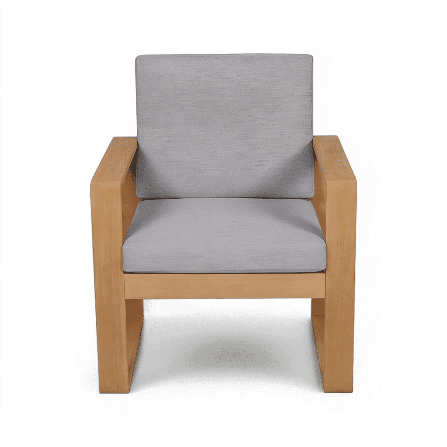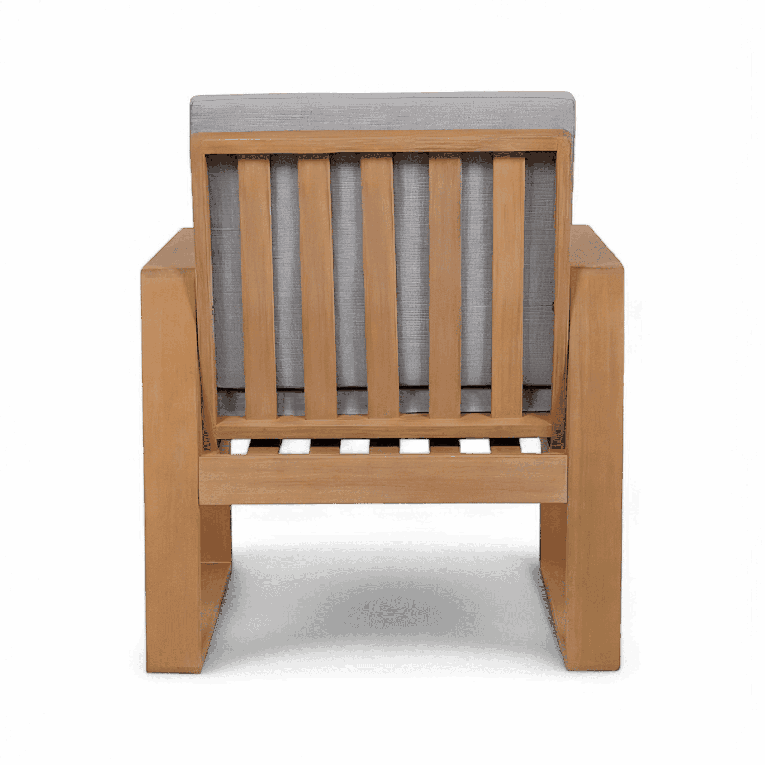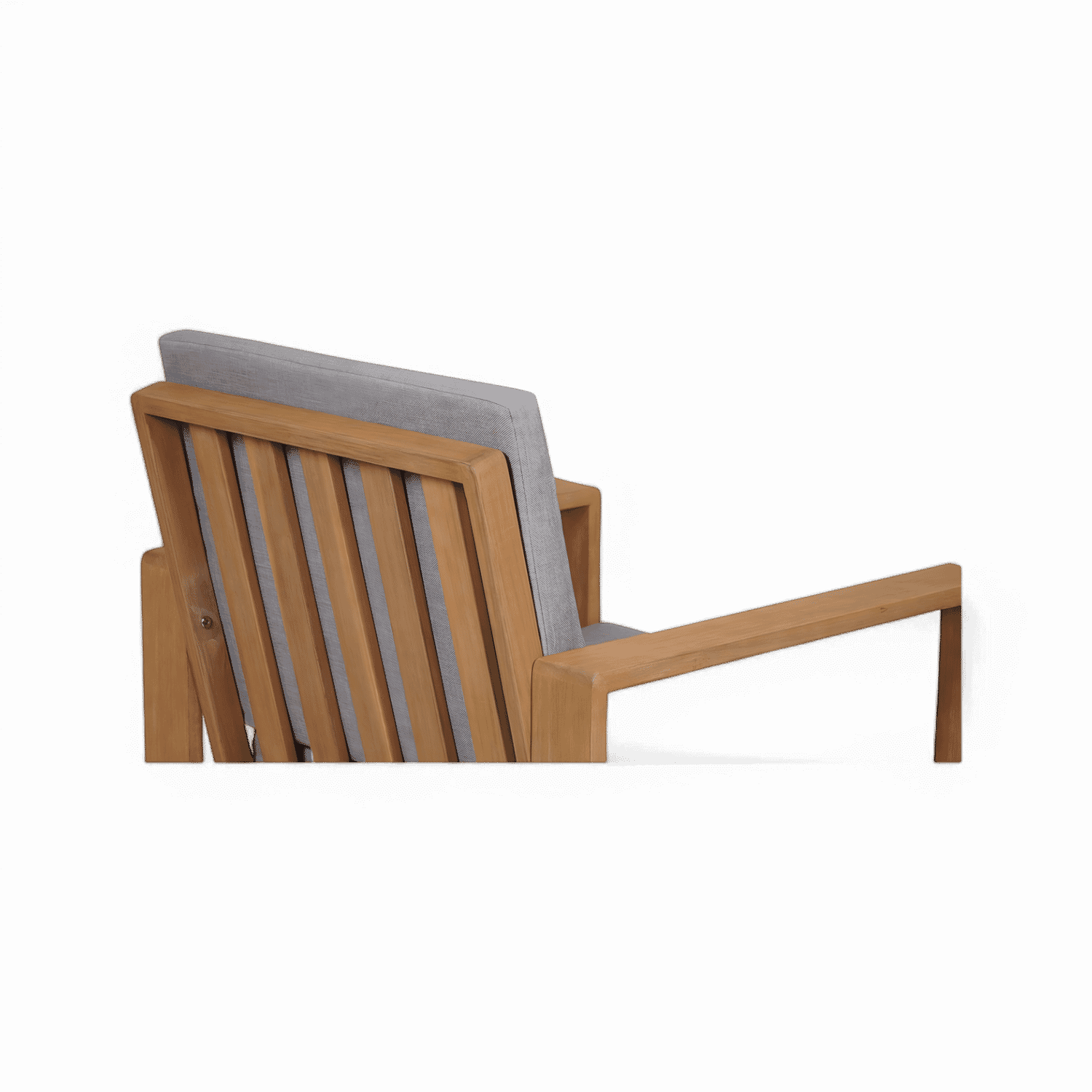 Kick back and relax in our plush Bocay Outdoor Armchair, crafted from solid acacia wood and upholstered with outdoor-resistant fabric in a soft, soothing seafoam blue. With its wide back and armrests, this piece ensures hours of comfortable lounging.