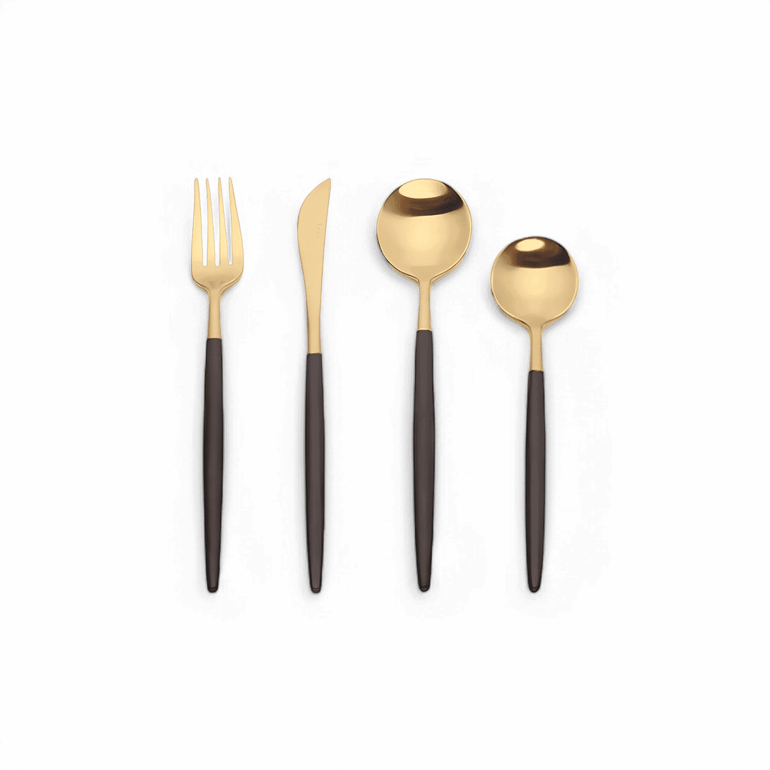 Sophisticated and eye-catching, this minimalist set boasts a stunning two-tone contrast. Fusing stainless steel and chromium nickel, it flaunts a thin and sleek design, feeling fancy in the hand. The Cantina Black and Gold Silverware set includes 1 fork, 1 spoon, 1 large spoon and 1 small spoon. Ideal for special occasions and the casual everyday meal, this set brings a hint of chic to your table.