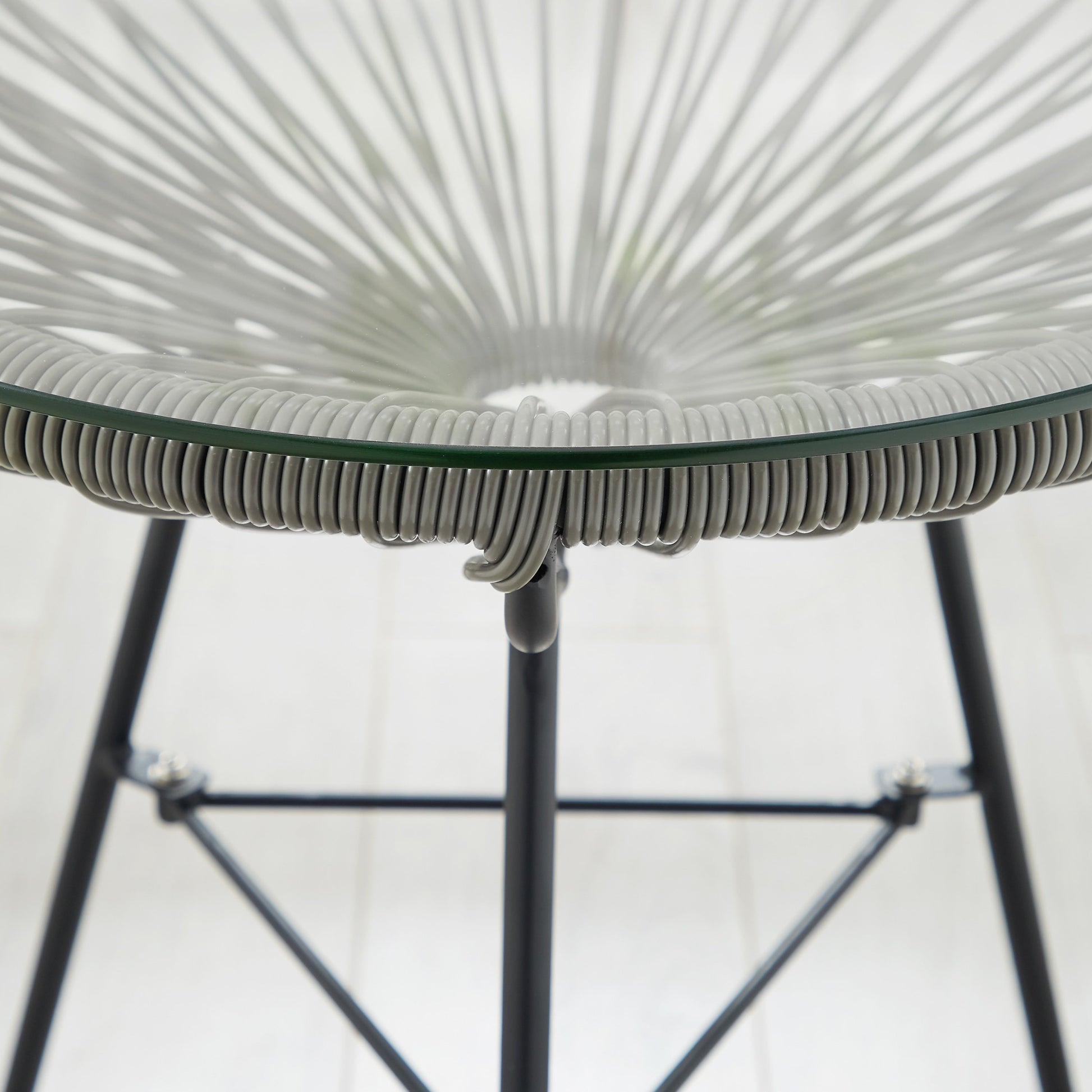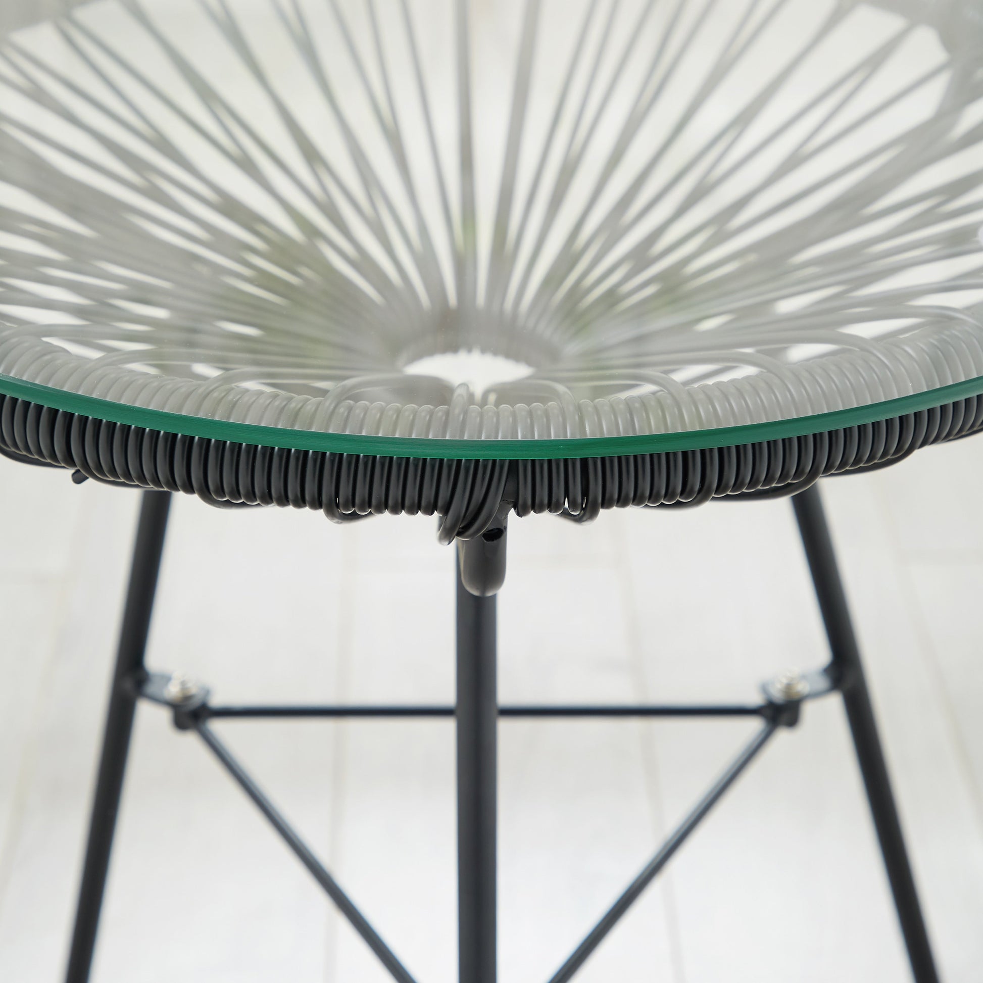 Add a touch of modern elegance to your indoor or outdoor space with this Sarcelles 3-Piece Modern Wicker Acapulco Chat Set by Corvus. Made with black metal frames and wrapped with polyethylene wicker for durability, these chairs feature rounded seats and high seat backs for maximum comfort. The included side table has a round tempered glass top and a tripod-style metal base wrapped with curving HDPE wicker. With three color options to choose from, this set is perfect for any decor style.