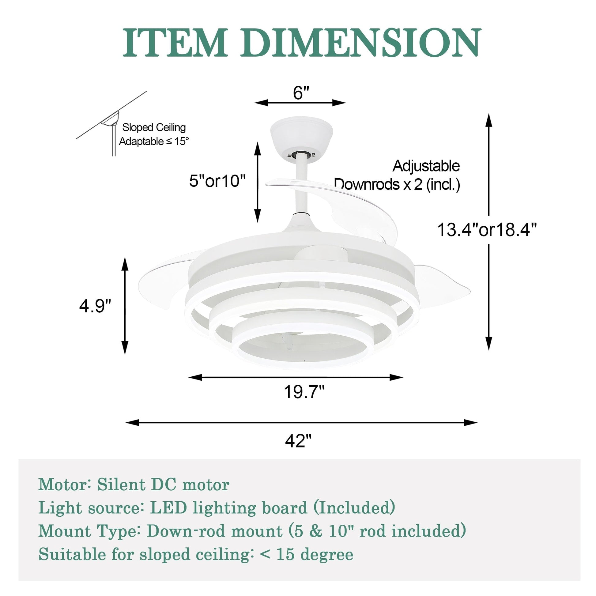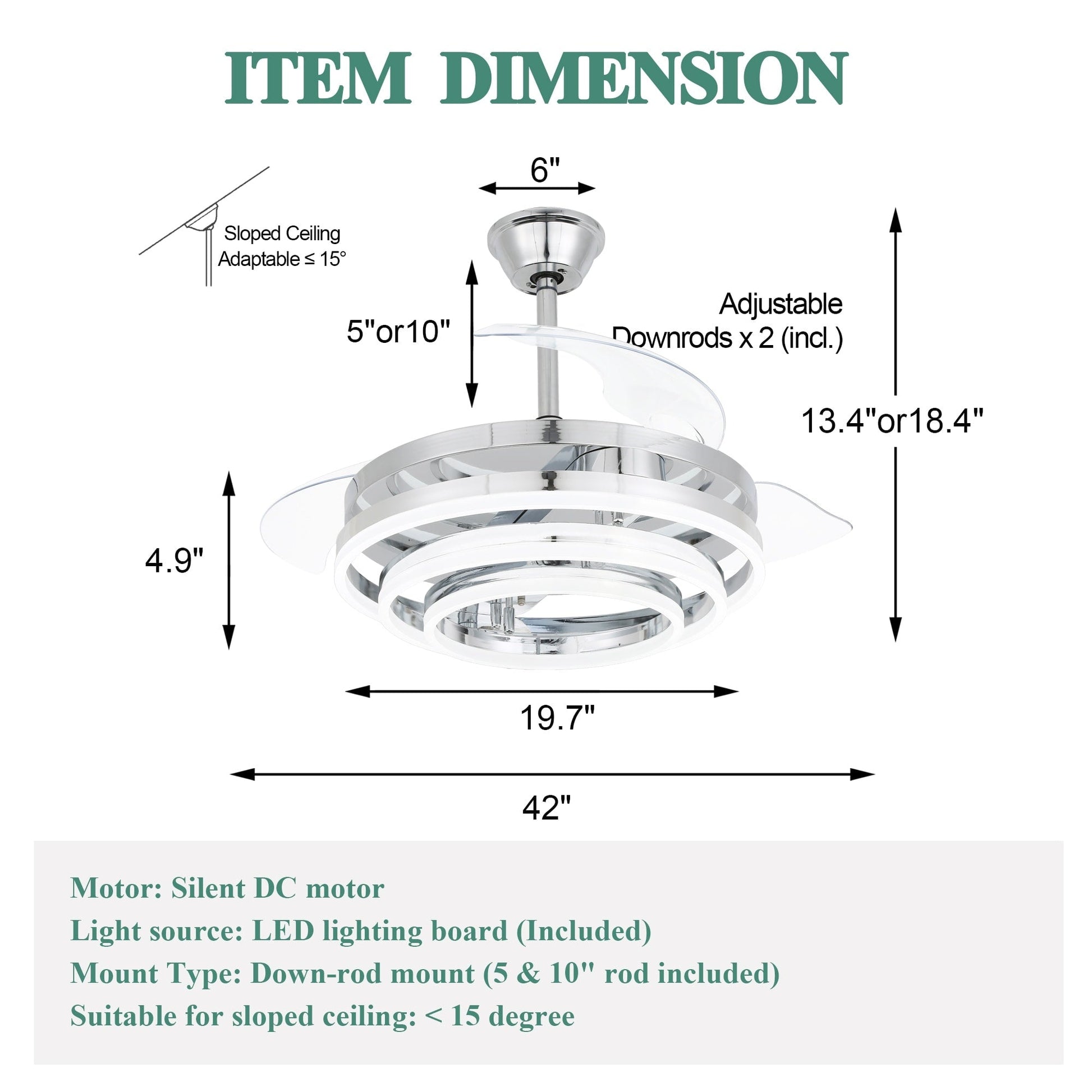 Cusp Barn 42 Retractable Ceiling Fan with Lights and Remote DIY Shape Fandelier Modern Silent DC Motor LED Ceiling Light