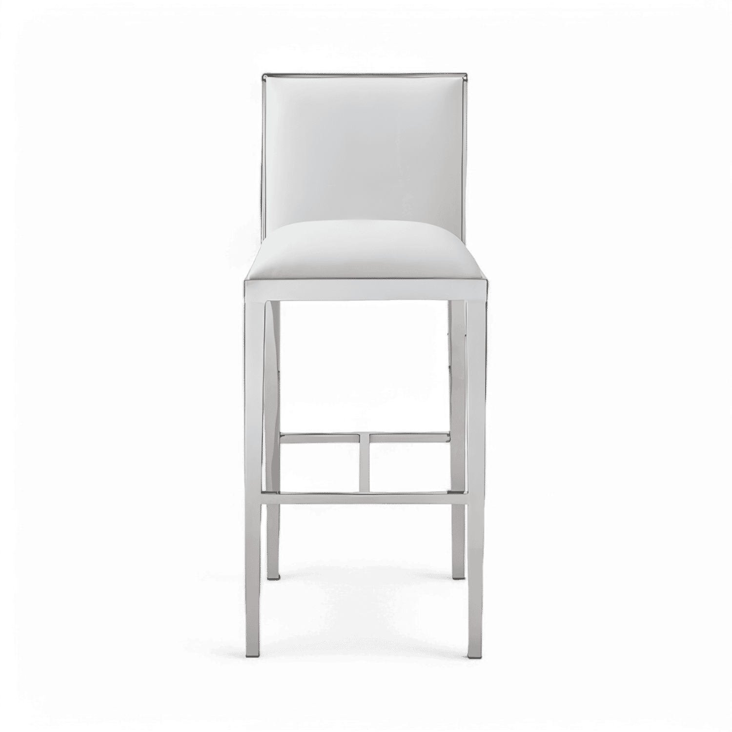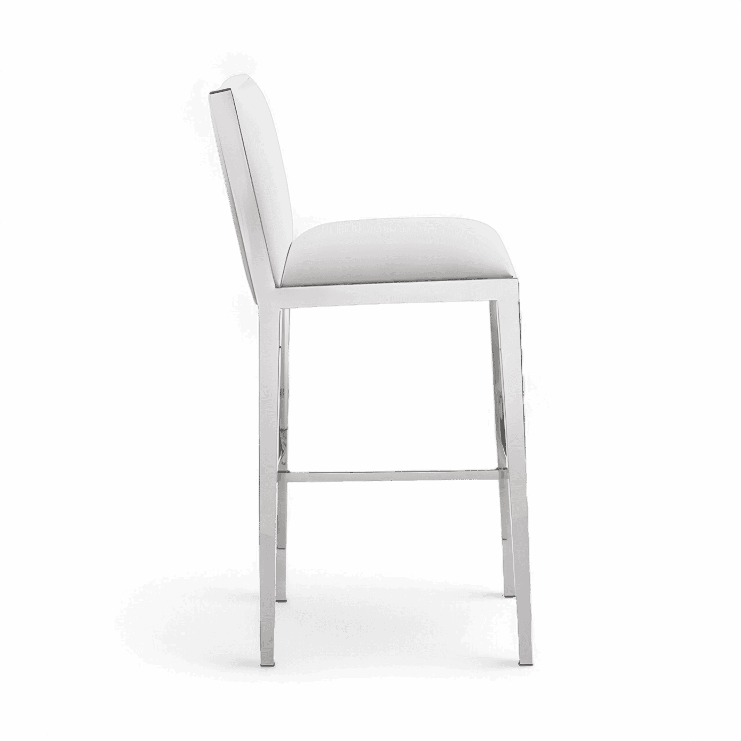 Add comfort to your modern home with our Dylan Counter Stool in White. With a polished silver frame and a white leatherette seat, this eyecatcher has an unmistakable charm and intrigue that beckons everyone to have a seat.