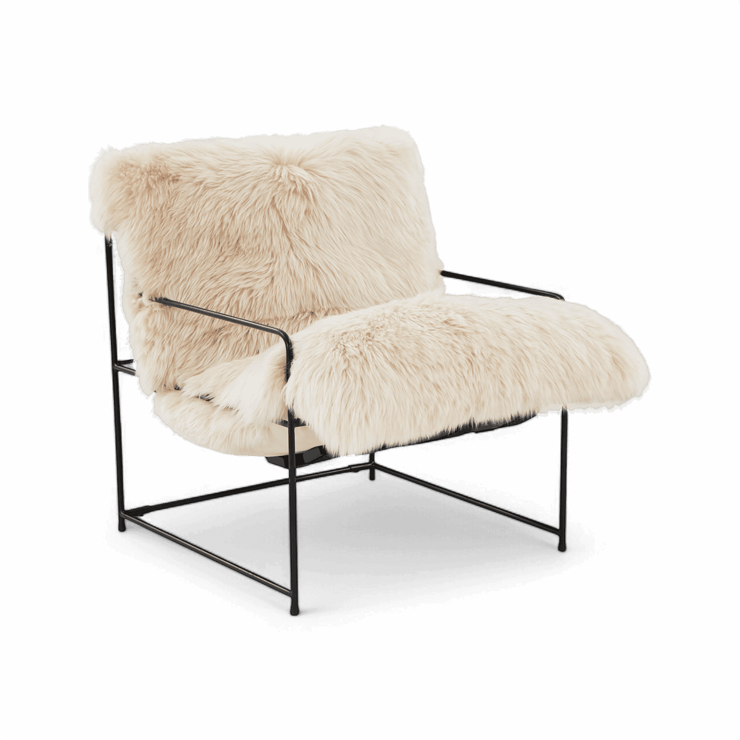 Iron,Sheepskin,Wood | Sumptuous genuine sheepskin upholstery | Neutral color complements most design aesthetics | Contrasting black iron frame