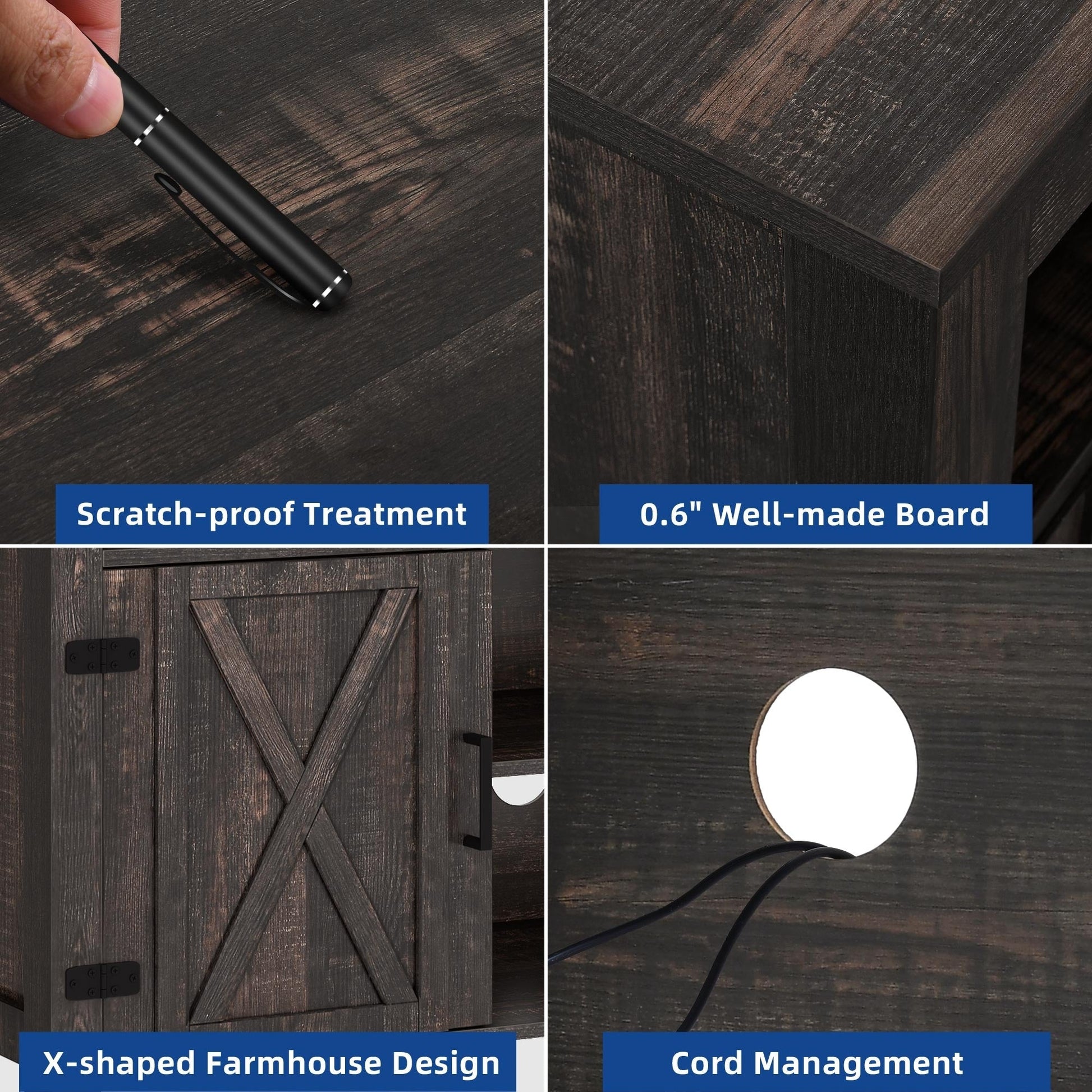- 5. Say Goodbye to Tangled Wires: A large cutouts help organize cords to avoid them getting tangled with one another, giving the space an uncluttered look. They also help ventilate electrical equipment