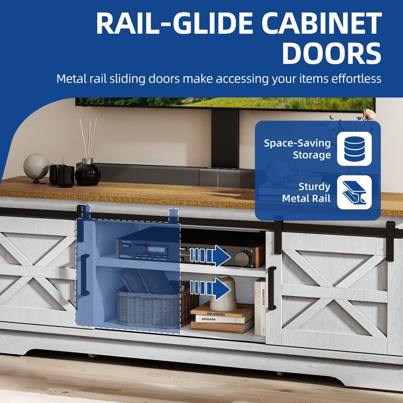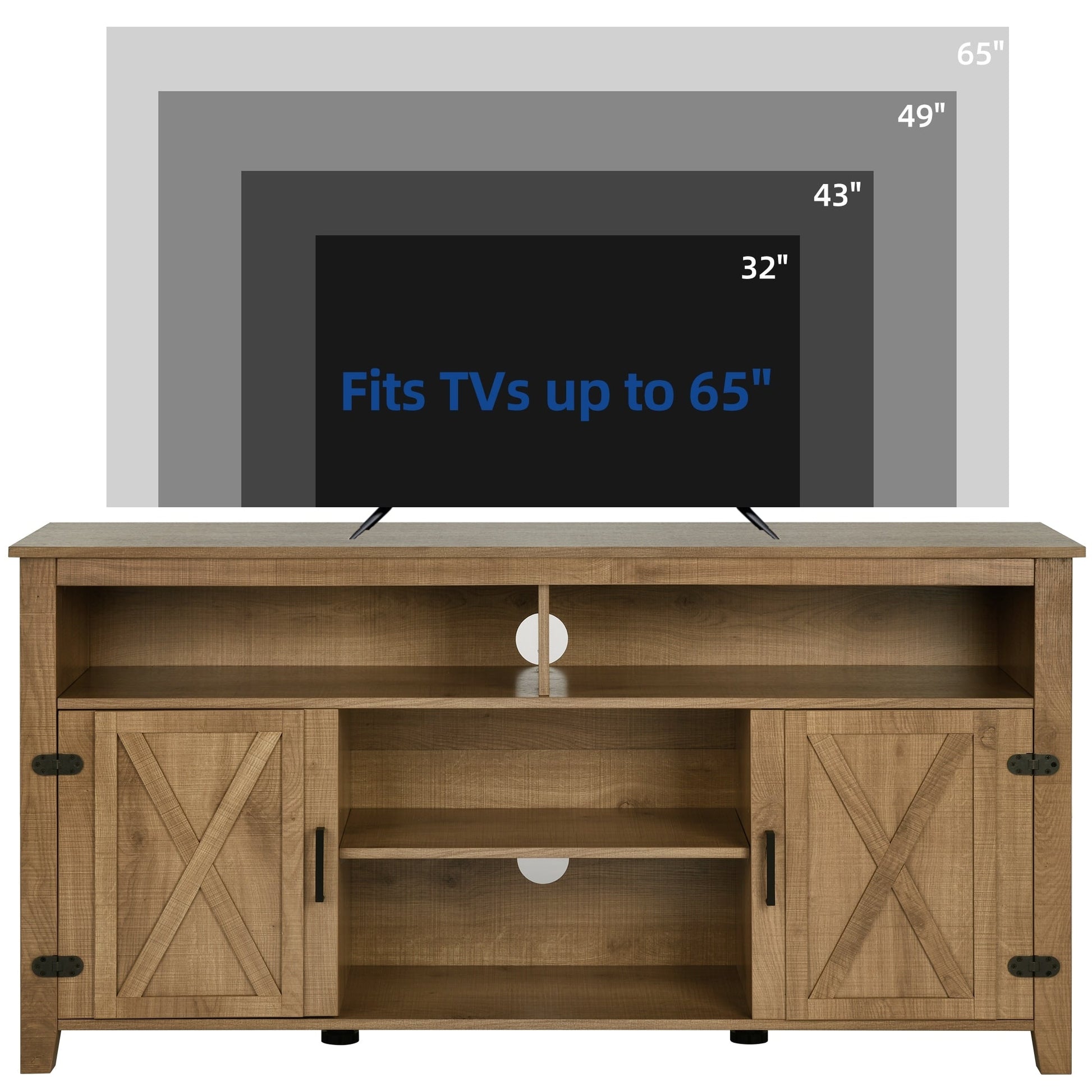 Farmhouse TV Stand for up to 65 TV with Doors and Open Shelves Media Console Power Outlet