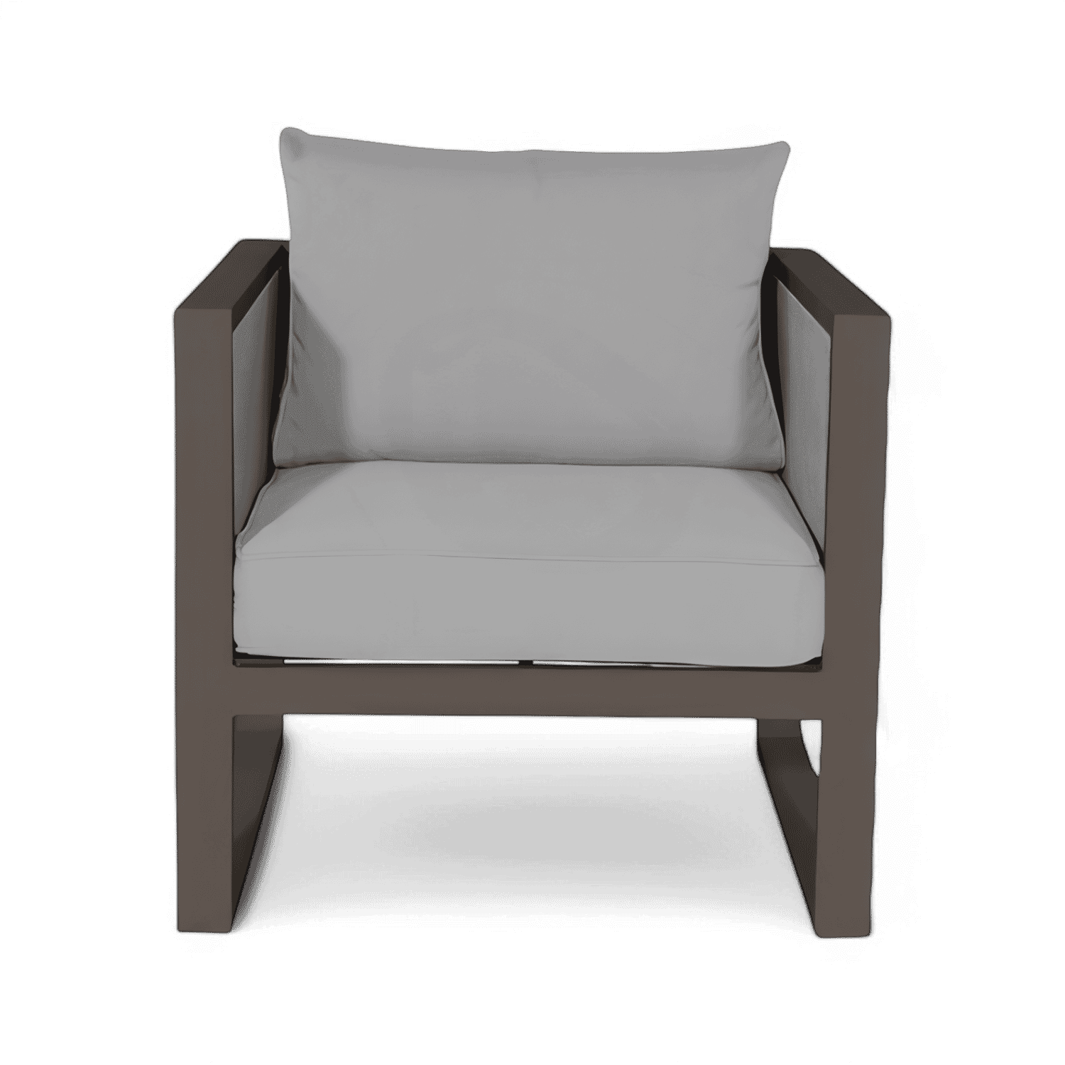 A crowd pleaser and easy mixer, the Fidji Outdoor Armchair in Taupe provides an extra seat when you need it most. Ultra-sturdy but extremely light to lift, the full resin wood and aluminum frame provide a beautiful backbone for a comfortable sit. Linen-like cushions in soft gray seamlessly complement any outdoor furniture style.