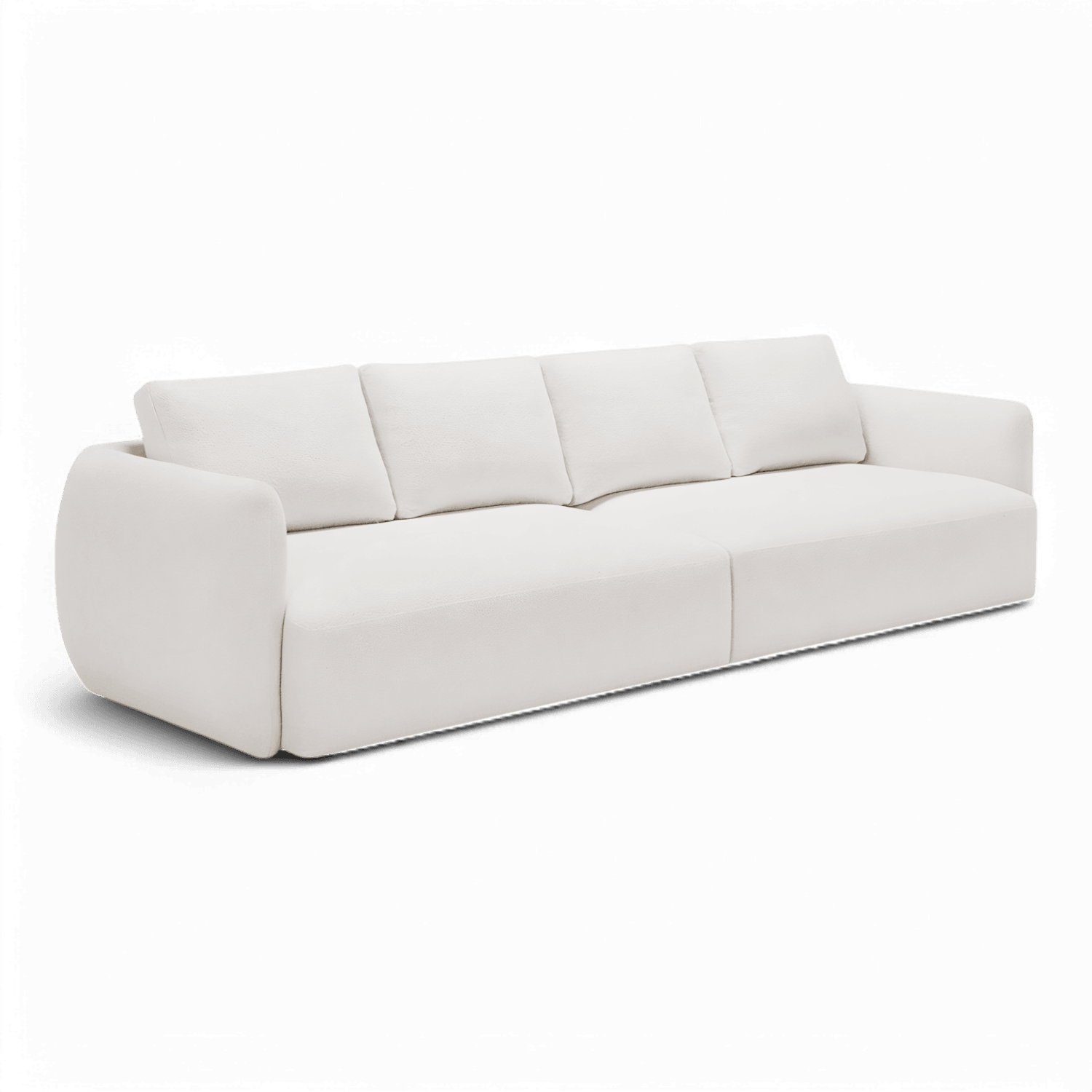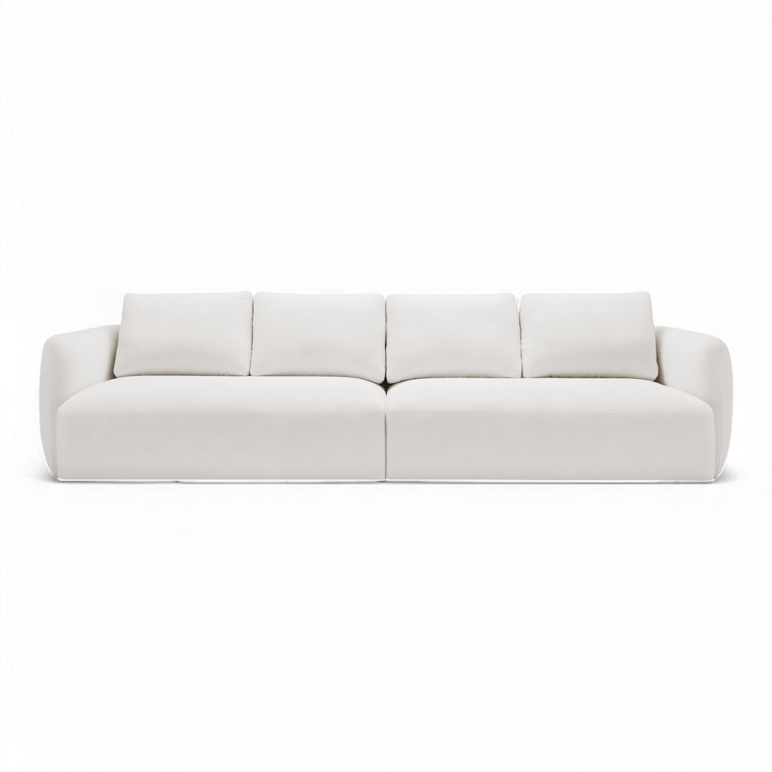 Crafted to elevate your living space, the Gabriele 4-Seater Sofa in White Boucle features soft, rounded edges that create an inviting silhouette. The intricate texture of the boucle fabric is not only a tactile delight, but also complements the clean, minimalist aesthetic of modern interiors. The Gabriele Sofa features a graceful four-seater configuration, offering ample seating for both intimate gatherings and cozy moments of solitude. Pair it with the Gabriele Ottoman for extra legroom.