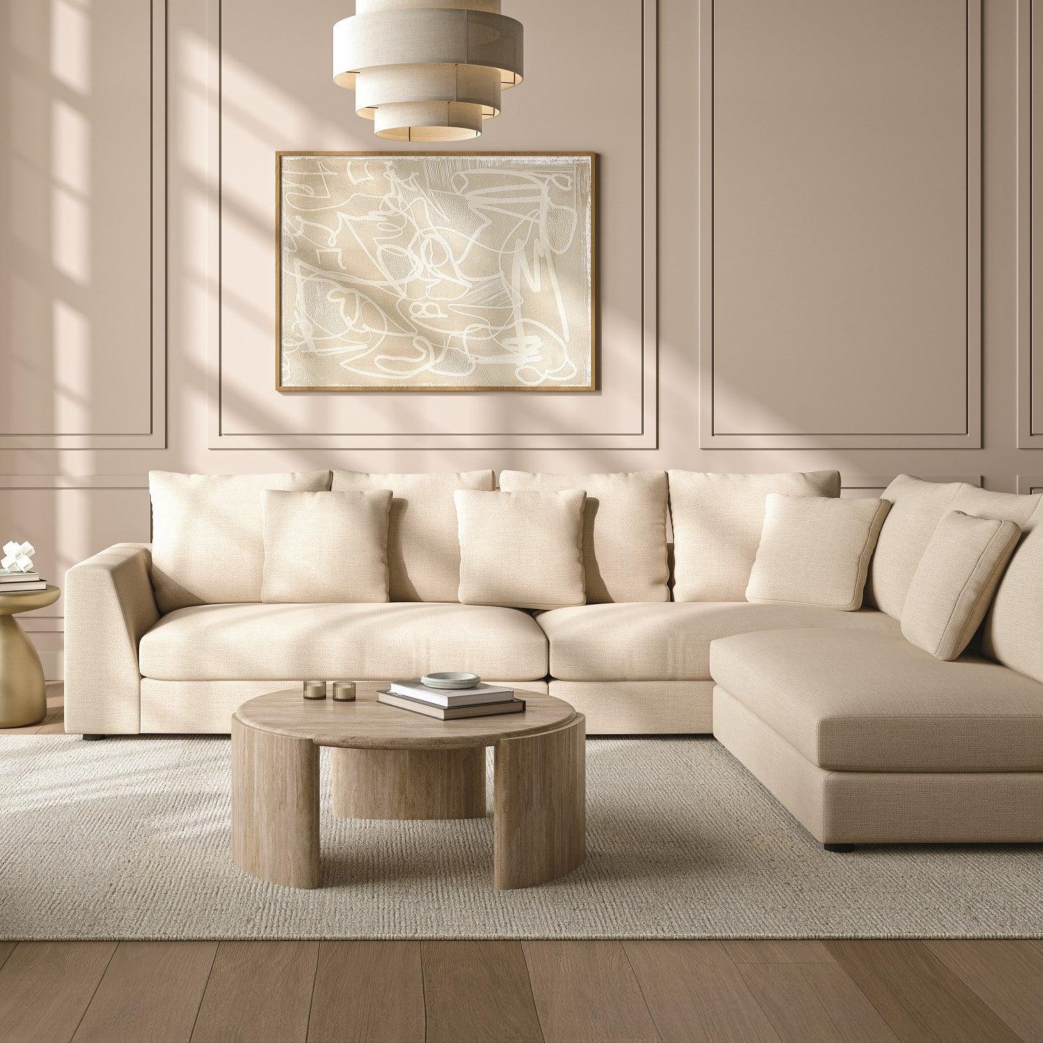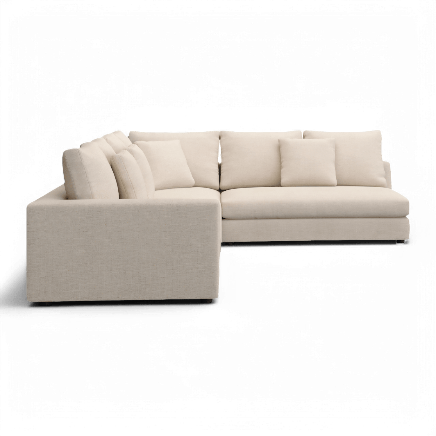 The Gianni Sectional Sofa Cream combines contemporary design with ultimate comfort, making it the perfect centerpiece for any living space. Upholstered in a luxurious, cream-colored fabric, this L-shaped sectional invites relaxation with its soft, inviting texture. Its squared armrest and clean-lined back lend a modern, minimalist aesthetic, seamlessly blending style with functionality.
