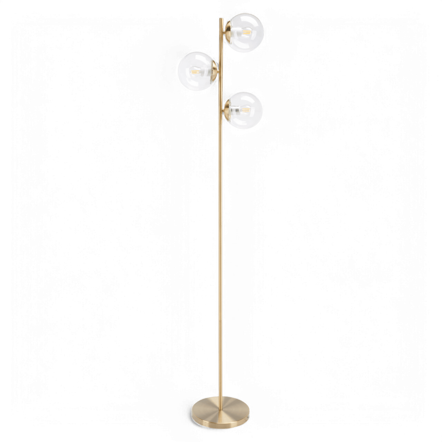 The Glow Floor Lamp in Antique Gold is a timeless lighting piece that brings elegance and warmth to any space. Standing approximately 65 inches tall, it features a straight, slender pole finished in a rich antique gold color that exudes vintage charm. Three globe-shaped bulbs are arranged at staggered heights, creating a captivating, layered effect that enhances the lamp's visual appeal and casts a warm, ambient glow. This thoughtfully designed lamp seamlessly blends classic and modern aesthetics, making it a perfect addition to living rooms, bedrooms, or reading nooks where style and soft lighting are desired.