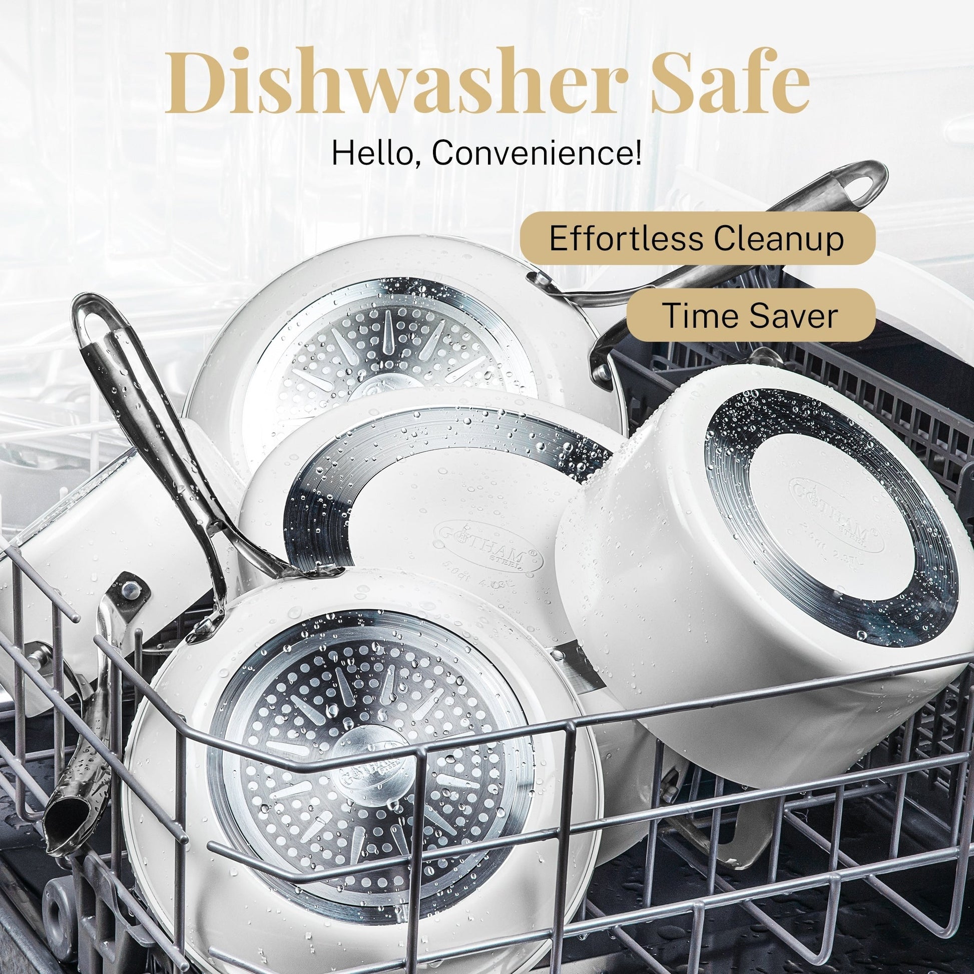 - Stylish and Durable Design: Featuring a chic cream color, stainless steel stay-cool handles, and tempered glass lids, this cookware is lightweight and durable, perfect for modern kitchens with a touch of elegance.