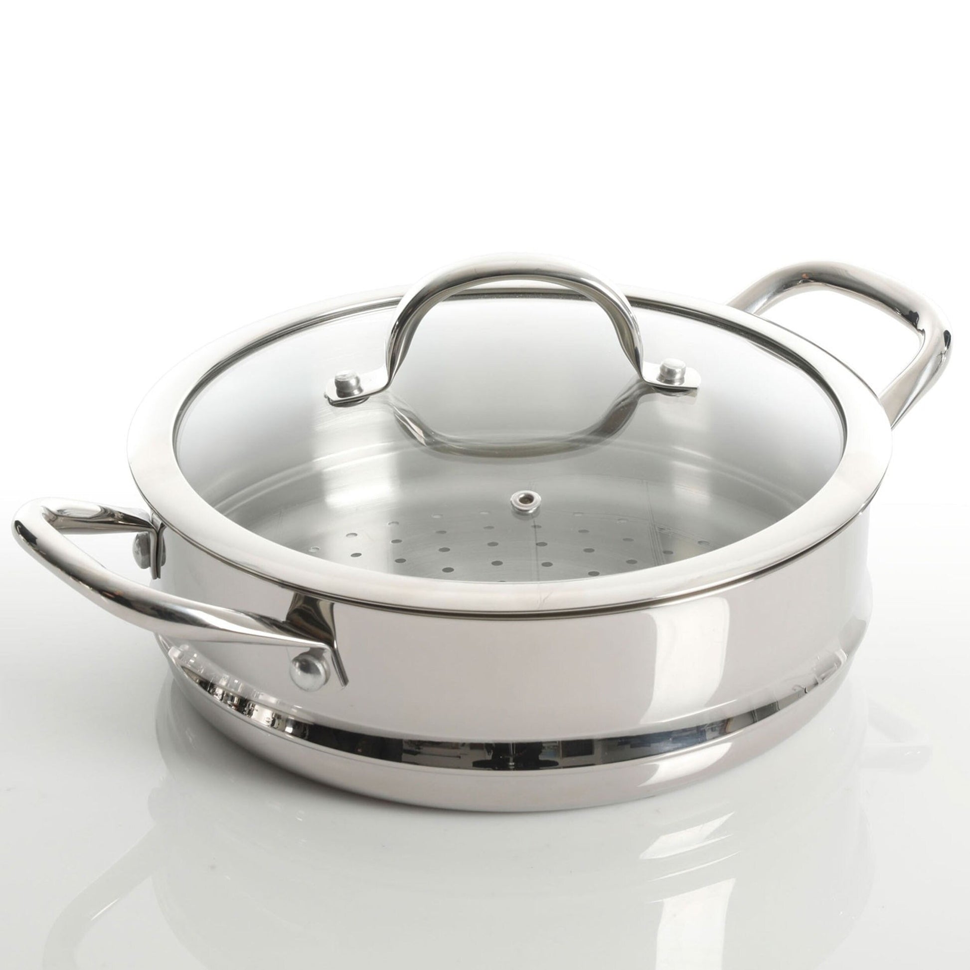Cook and create your wildest dishes with the 10 Piece Heavy Gauge Stainless Steel Cookware Set. Providing all the basic necessities, this cookware set allows chefs of all skill levels to fry, saute, sear, steam, boil and bake. The heavy gauge stainless steel bodies are compatible to any home stove top burner. The dutch oven and pans include heat resistant glass lids with steam vents for easy monitoring as the food cooks! Steam veggies, stir fry noodles, fry chicken, stir savory tomato sauces and more.Set: Cookware SetMaterial: Heavy Gauge Stainless SteelFinish: PolishedHandles: Stainless SteelCompatible with All Cook TopsHand Wash OnlySet Includes:One 1qt Saucepan with 6.25in Handle and LidOne 2.5qt Saucepan with 7in Handle and LidOne 9.5in Frying Pan with 7.25in HandleOne Steamer Insert with 2in HandlesOne 4.4qt Saute Pan with 8.5in and 2in Handles and LidOne 5qt Dutch Oven with 2in Handles and LidPer Item Measurements:1qt Saucepan: 12.25in length, 6in width, 3in height, 1qt capacity, 1lb weight2.5qt Saucepan: 14.25in length, 7.75in width, 4in height, 2.5qt capacity, 1.75lbs weight9.5in Frying Pan: 17in length, 10in width, 2.25in height, 48oz capacity, 2lbs weightSteamer Insert: 14in length, 10in width, 3in height, 1lb weight4.4qt Saute Pan: 22in length, 11.5in width, 3in height, 4.4qt capacity, 3.55lbs weight5qt Dutch Oven: 13.75in length, 10in width, 4.5in height, 5qt capacity, 2.8lbs weight