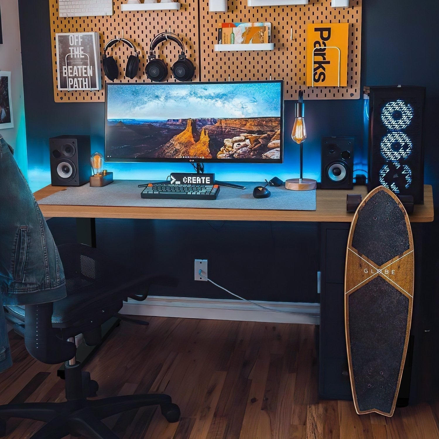 - Industrial-grade steel frame and solid desktop supports up to 176 lbs