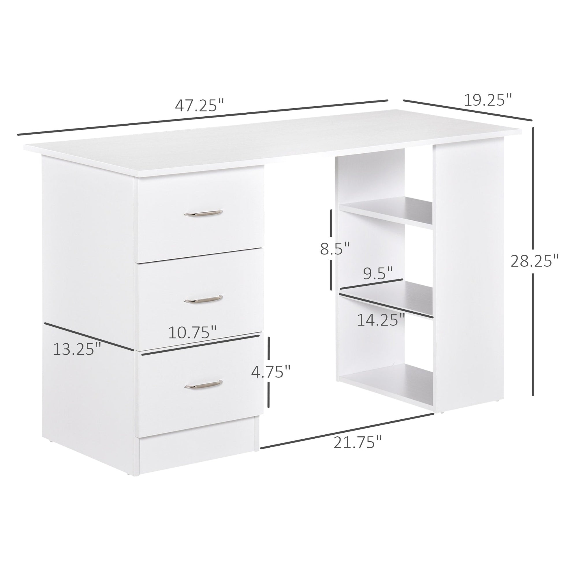 HOMCOM 47 Modern Home Office Computer Desk Bookcase Combo Writing Table Workstation with 3 Drawer and Storage Shelf - White