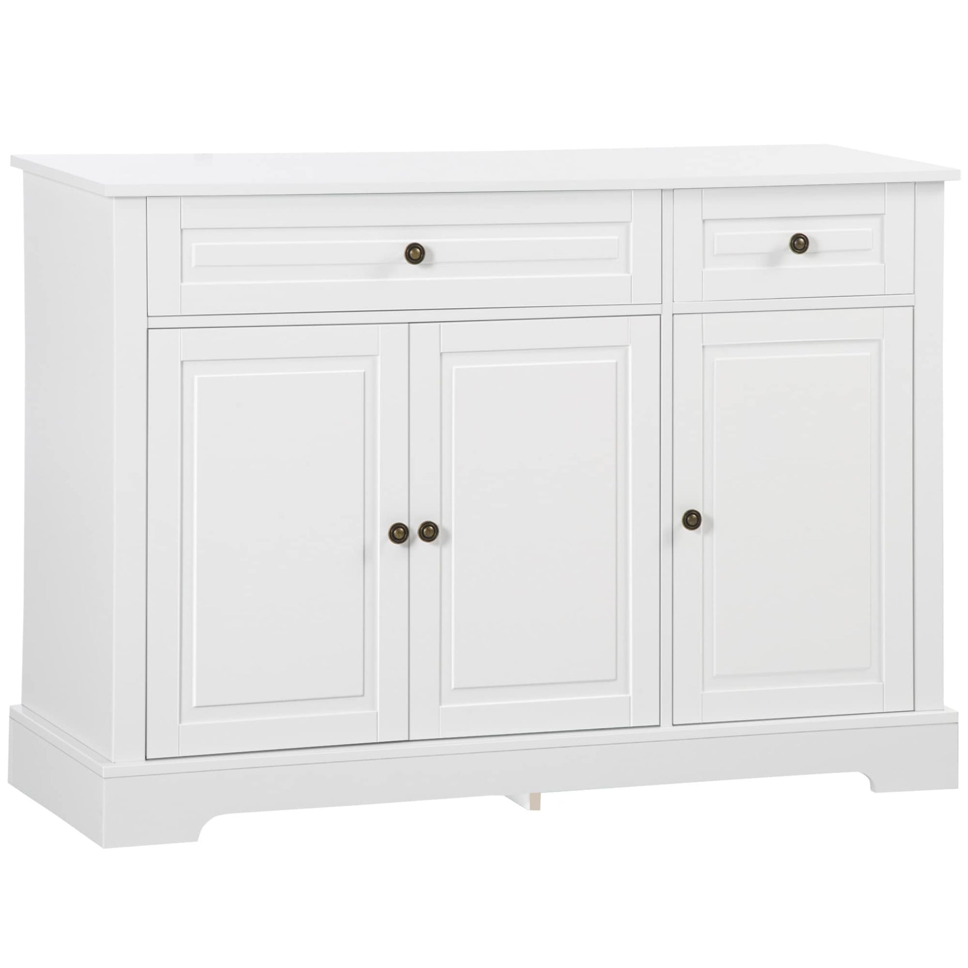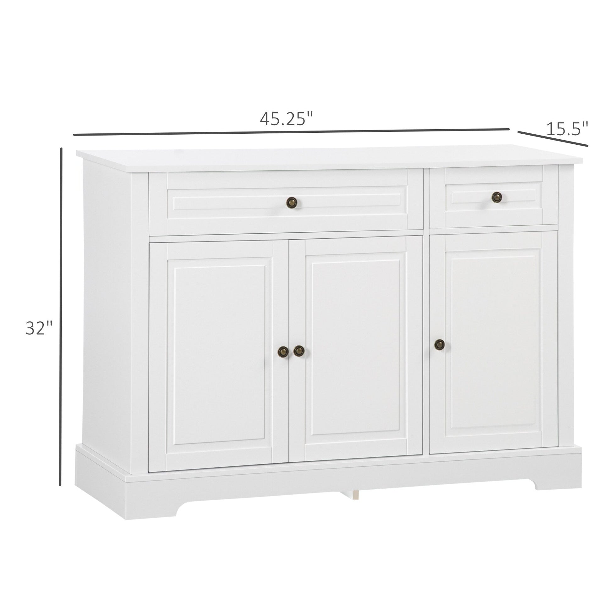 Quickly add that needed storage and get yourself clutter-free with this HOMCOM sideboard buffet. The neutral tone makes this kitchen buffet cabinet a low-key statement to your house. At the same time, the cupboard and drawer provide ample storage space for your daily accessories and utensils. Customize your home space with the interior adjustable shelf that moves to fit your needs.