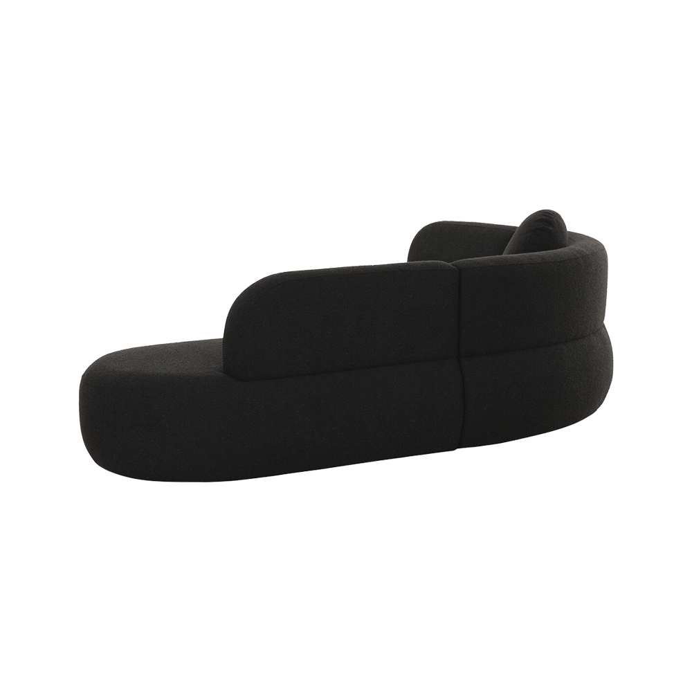 The Horizon Sectional Sofa in Black Boucle exudes modern sophistication with its sleek, curved design. Measuring 100' long on each end of the sofa, this spacious sectional offers ample seating and a cozy, textured boucle fabric. It's plush cushions and ergonomic shape provide both style and comfort, making it a standout addition to any contemporary living space.