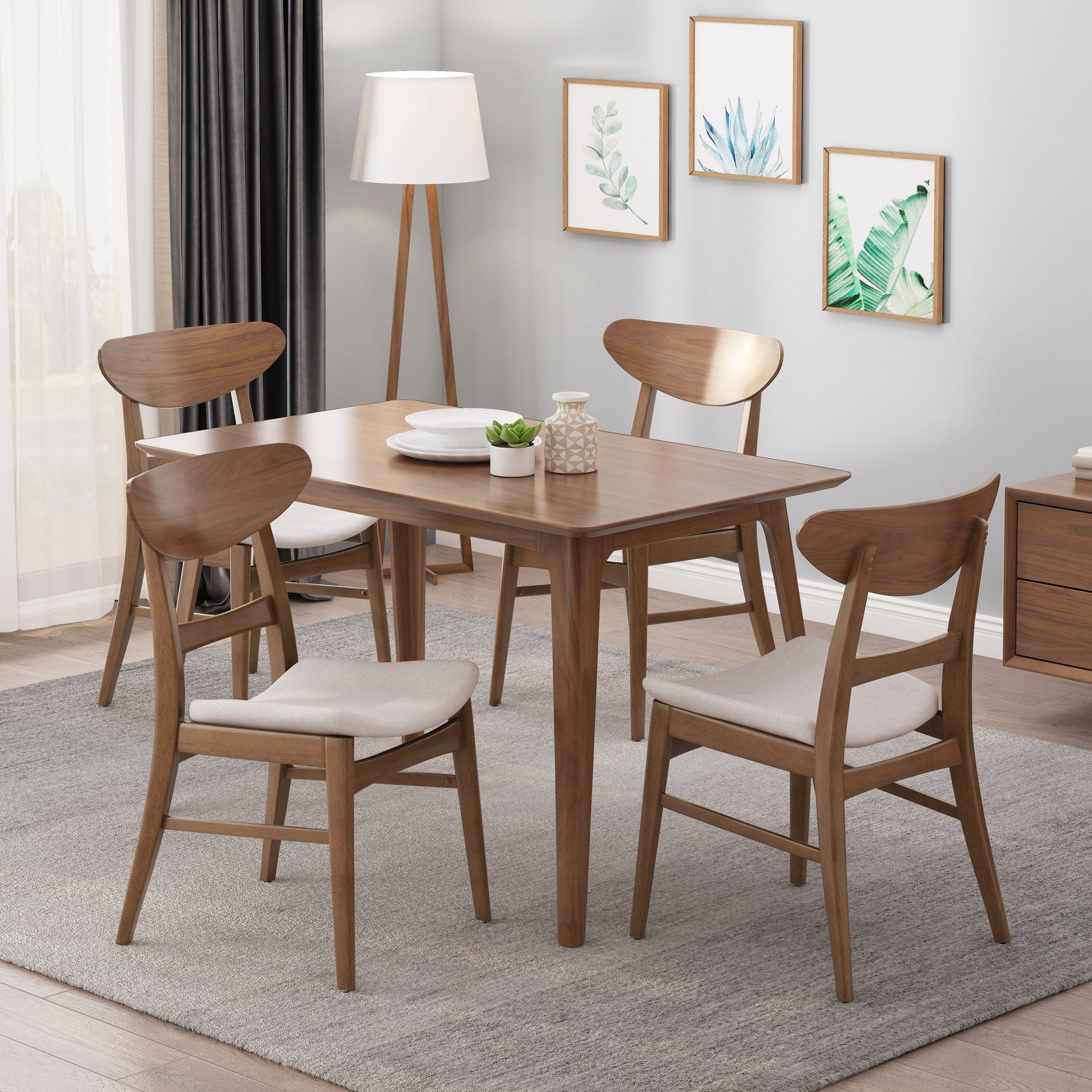 - Walnut finish with light beige upholstery