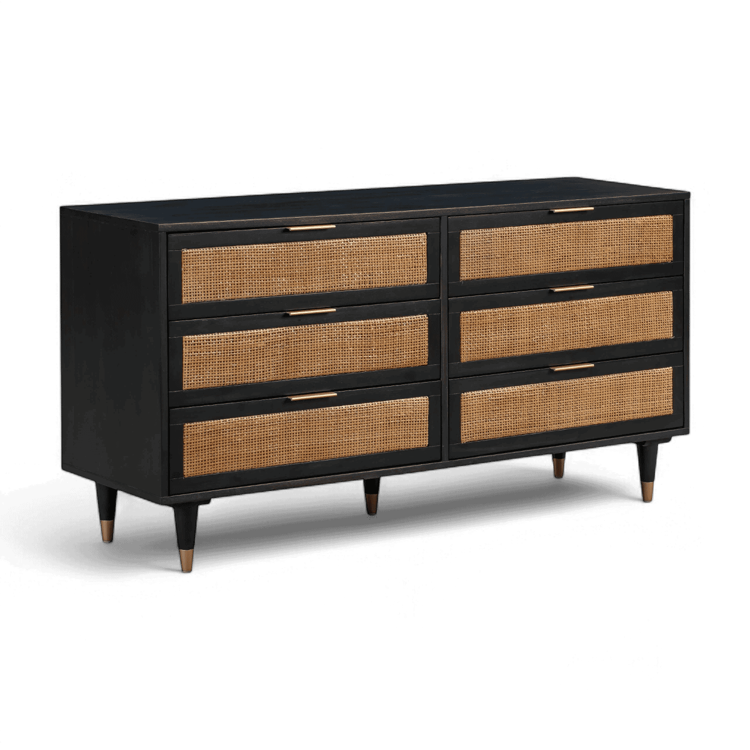 With its bold dark finish, the Ignis Noir 6 Drawer Dresser becomes a standout piece in any bedroom. Its minimalist design and spacious drawers offer practicality with an edge.