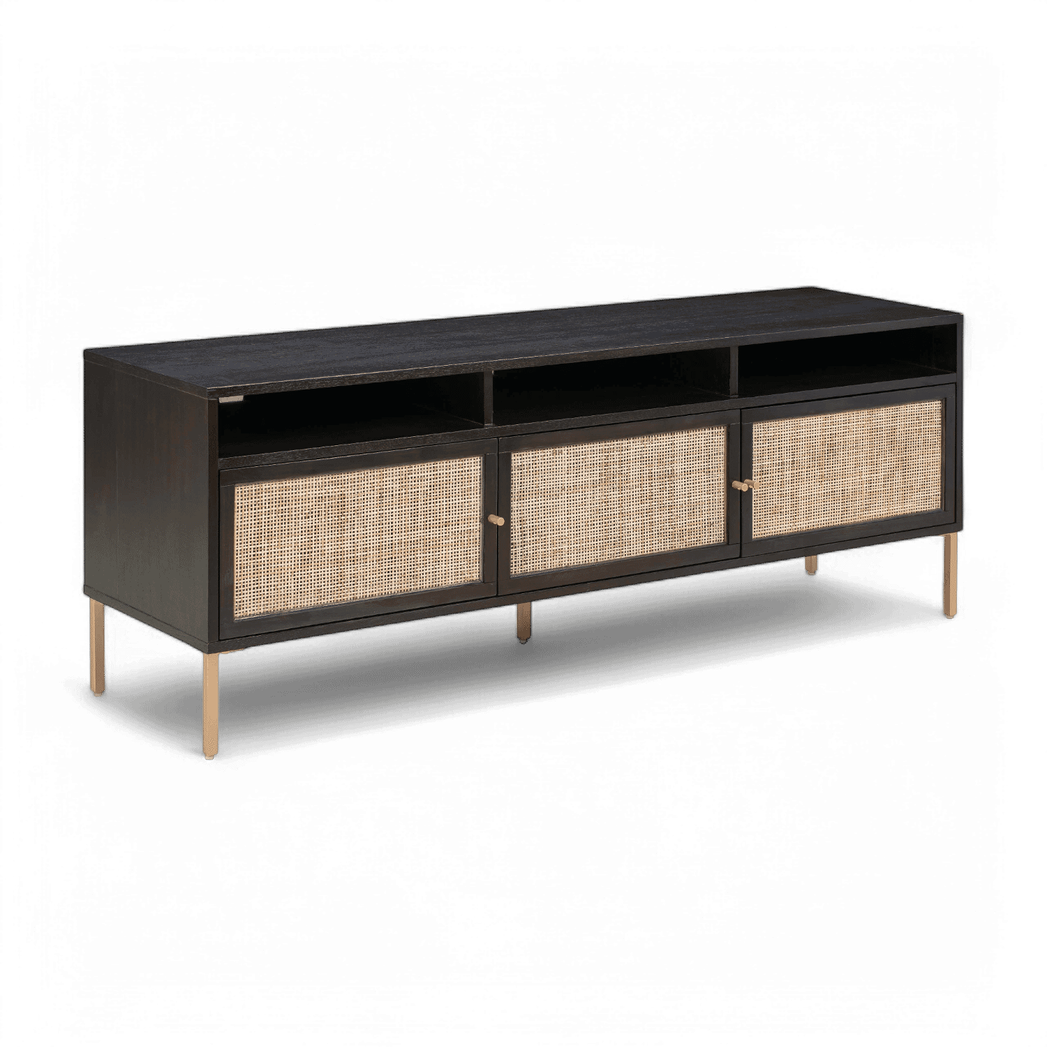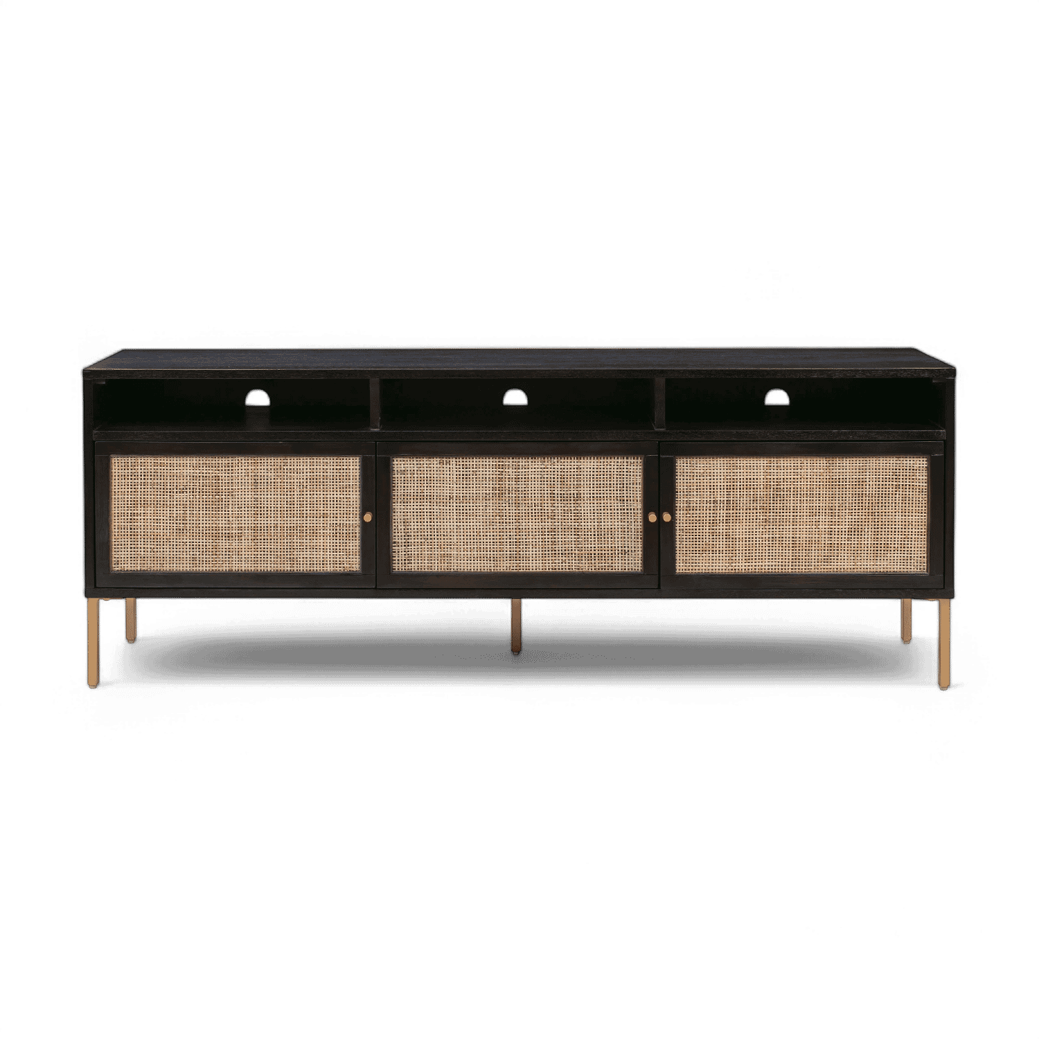 Acacia,MDF,Rattan | Available in two color options | Features plenty of storage with three soft close cabinets | Cabinet dimensions: 20.4'W x 16.8'D x 11'H