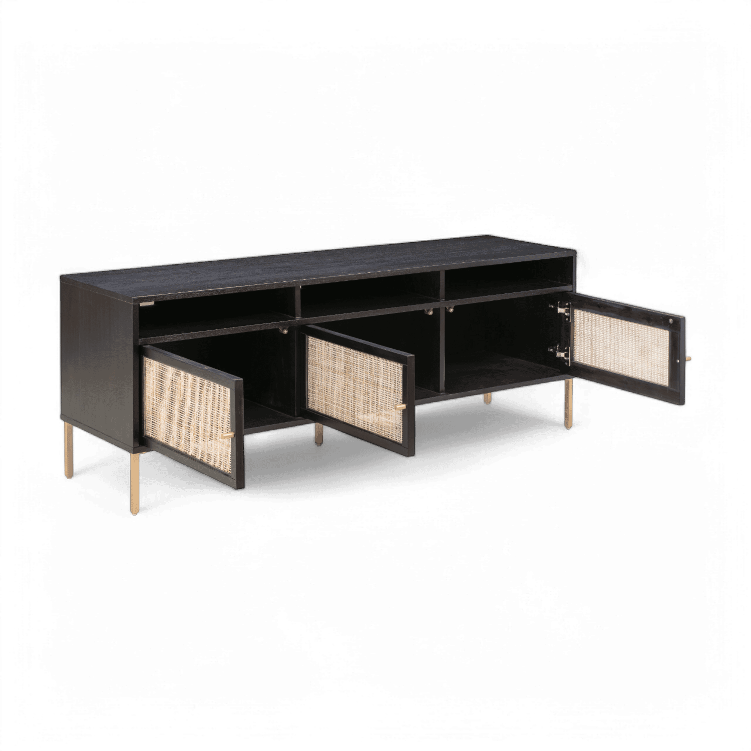 The Ignis Noir Media Console is the perfect blend of modern design and functionality. With its sleek dark finish and ample storage, it adds sophistication to your living room while housing your media essential