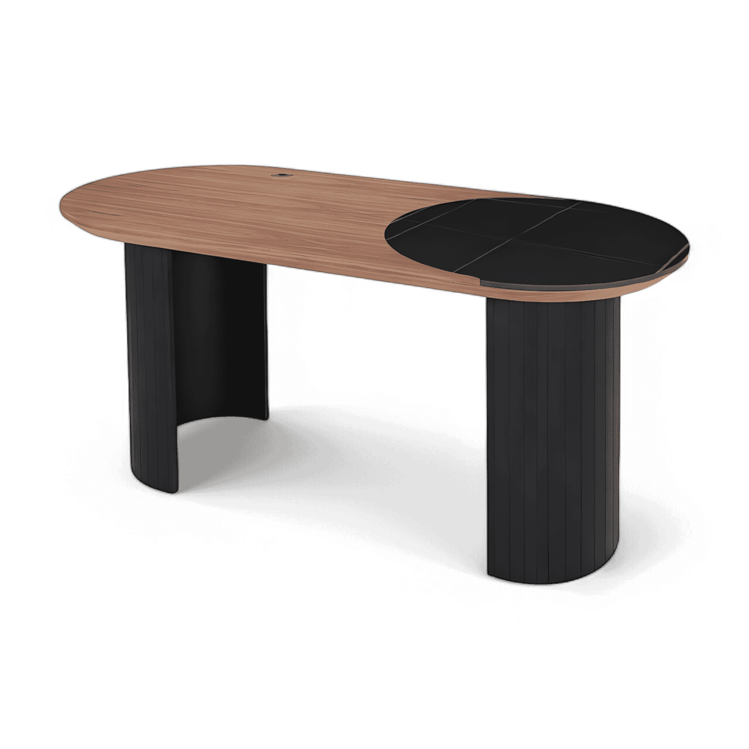 The sophisticated and stylish Jude Office Desk in Walnut and Black is a fusion of functionality and elegance. The desk showcases a sleek and contemporary design that effortlessly blends with any office decor. The Jude Office Desk also features a black marbled ceramic finish that exudes a sense of luxury and refinement, adding a touch of opulence to your work environment.