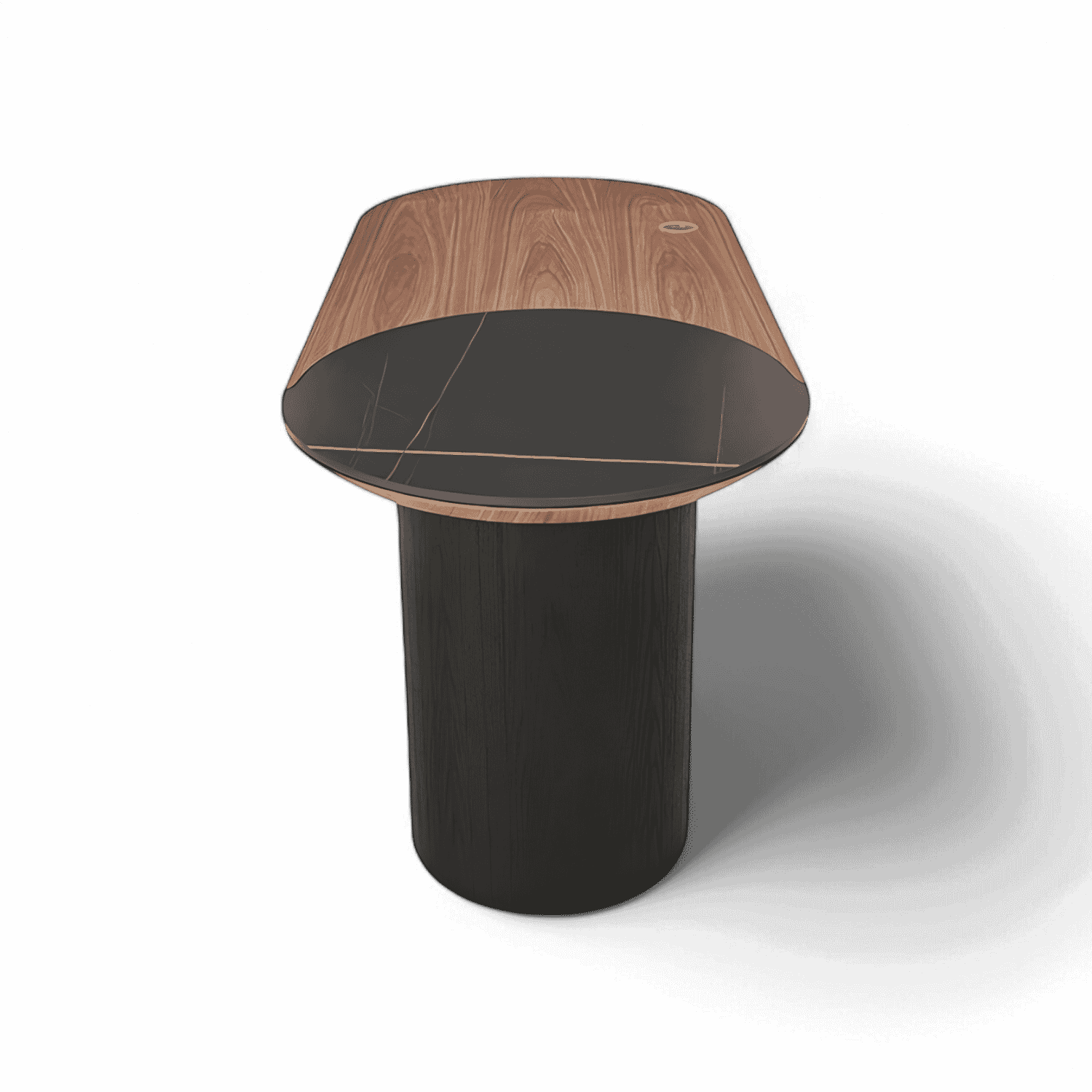 Top Materials: Engineered Wood Covered with Walnut Veneer, Black Marbled Ceramic | Legs Materials: Engineered Wood Covered with Black Oak Veneer