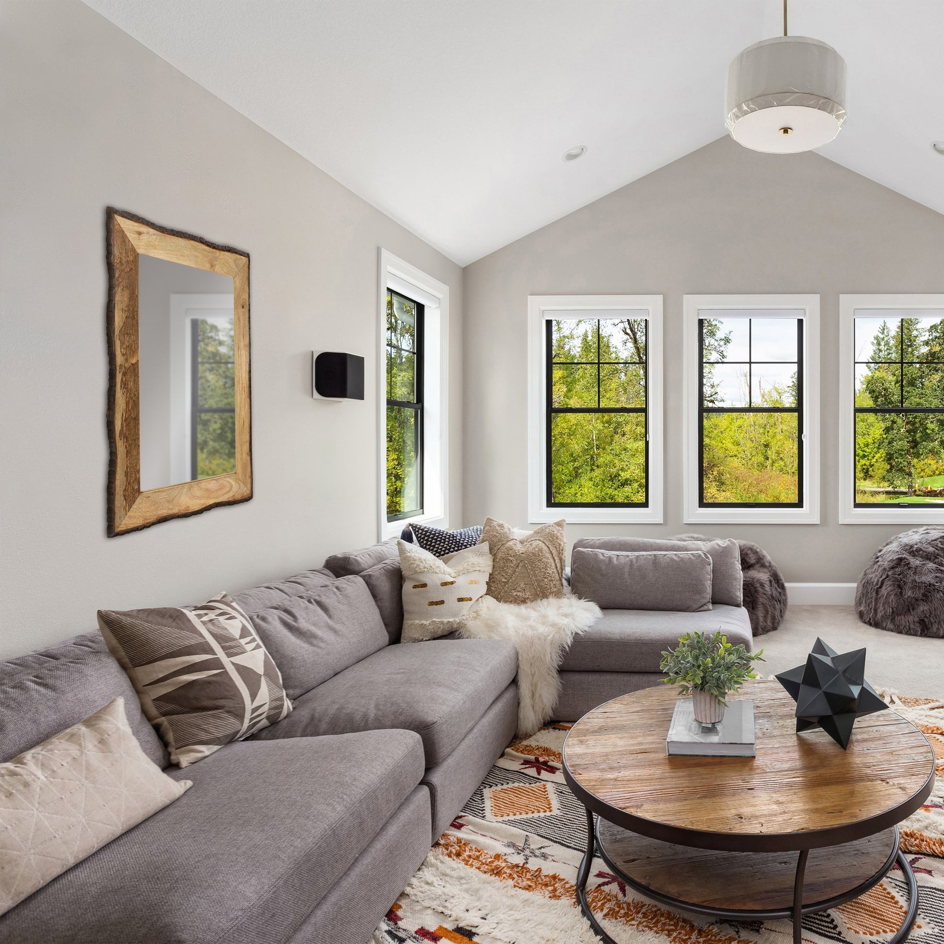 - Textured brown wood perimeter with smooth tan wood surrounding the glass