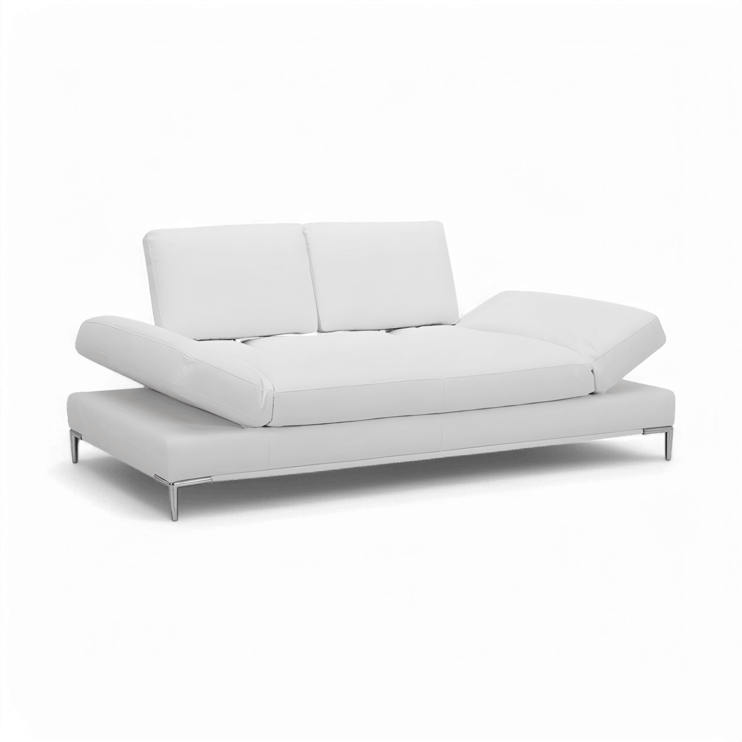 Lounge on the Livio 2 Seater Sofa White. With two movable armrests, this sofa is the ultimate in comfort. Sticking to modern furniture's classic motto of clean lines and functional design, this sofa lets you sit back and find tranquility in the middle of your living room. Soft white upholstery hugs the Livio Sofa for a fresh, elegant finish.