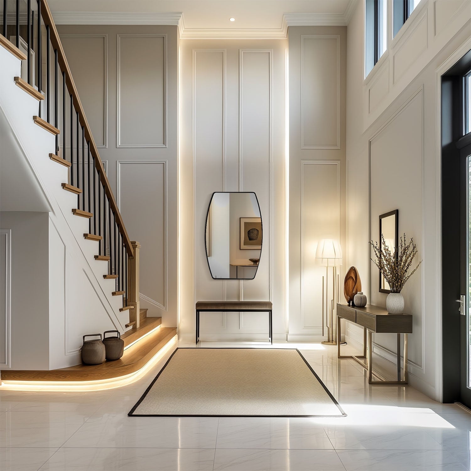 The MacLuu oblong mirror is eye-catching due to its unique shape. It's impressive for its classy look, sleek lines, urban attitude, and pop finish color, and how the mirror coordinates with them all. This mirror suits many home styles and works best in a bathroom or powder room.