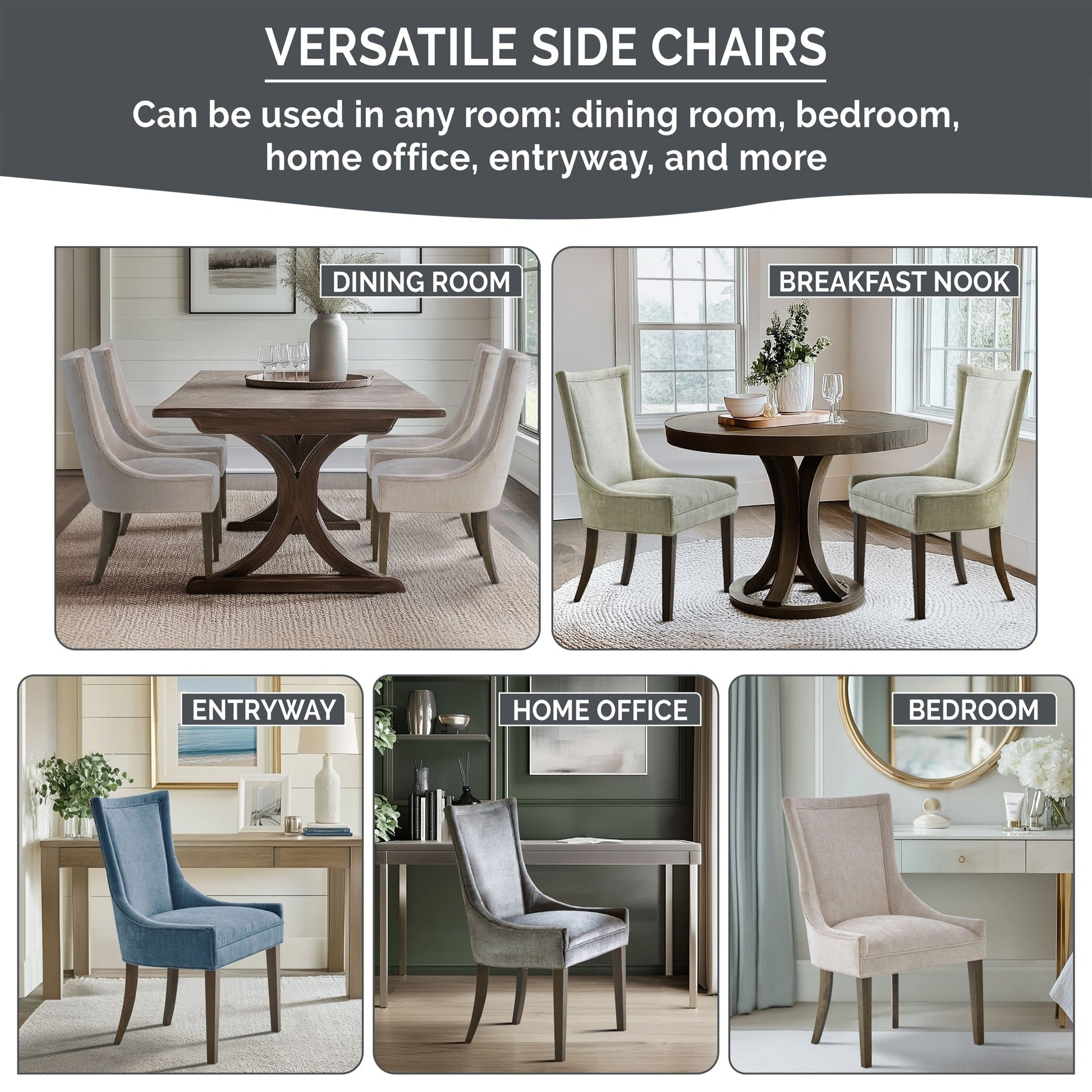 - Versatile set of 2 dining chairs with space-saving armless design perfect for dining room, bedroom, home office, living room, entryway and more