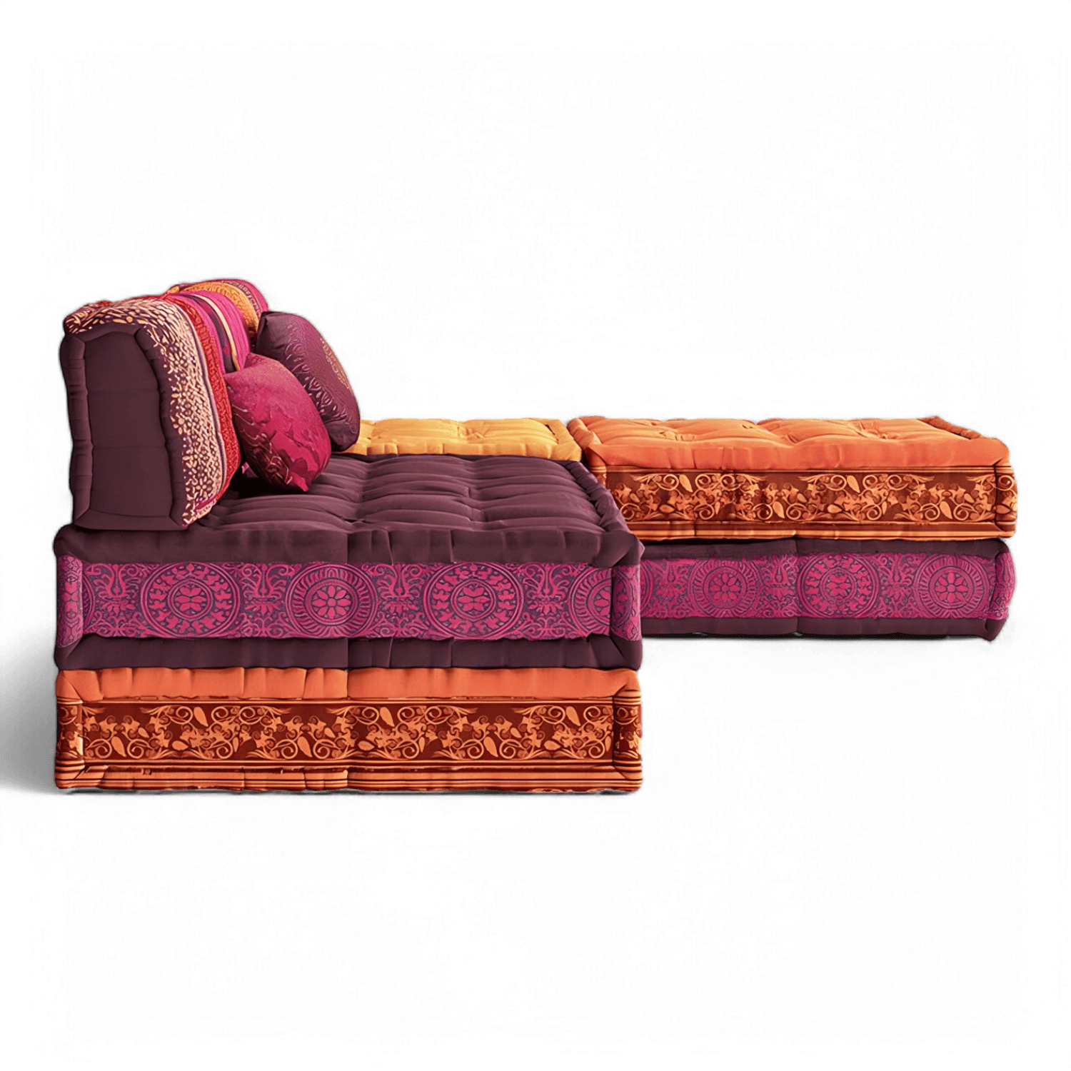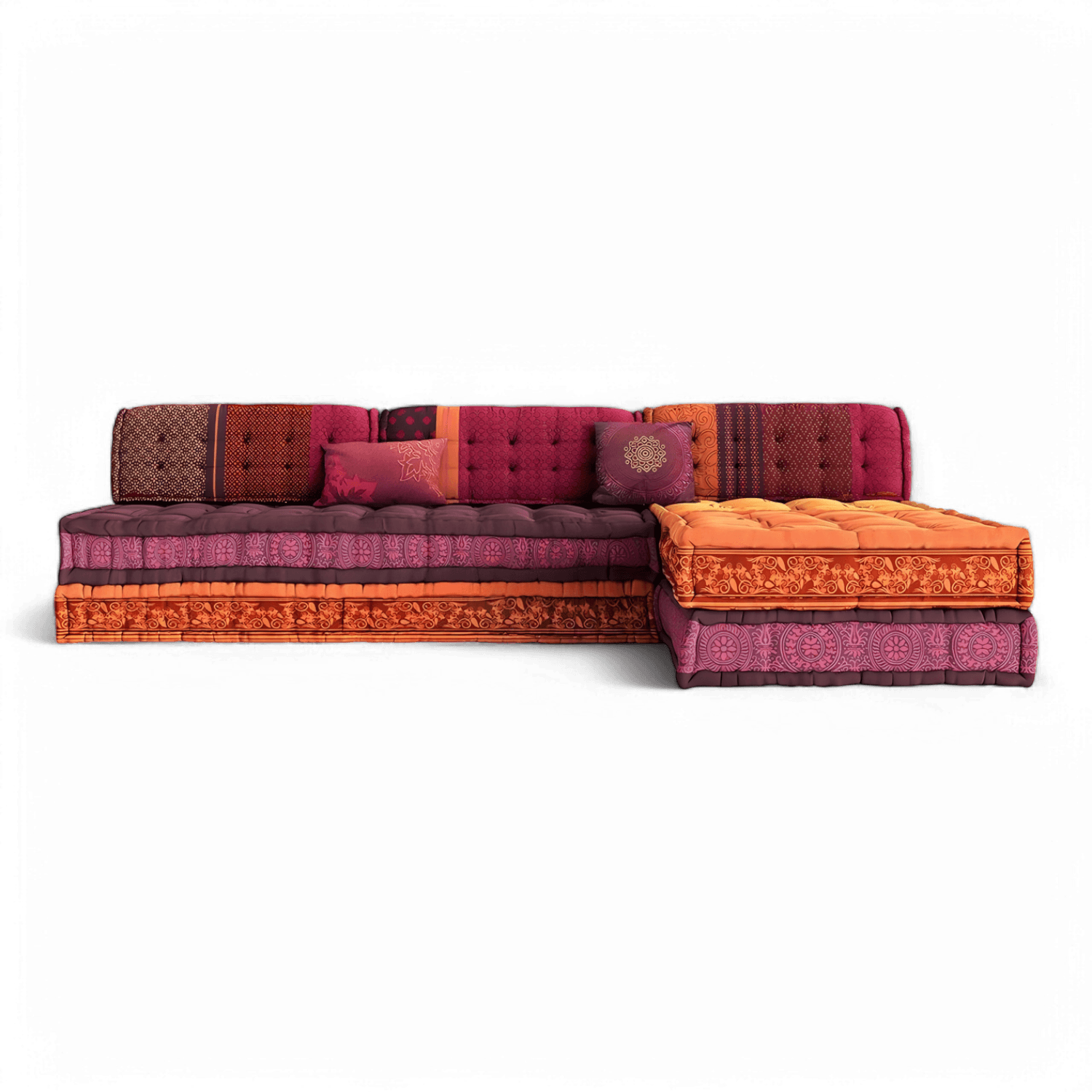 Add some texture to your living space with our Maili Sofa, a plush L-shaped sectional that offers plenty of comfort and style. Keep the look neutral with solids and stripes in soothing shades of gray, or add a pop of color with layered, patterned fabrics in orange, red, and plum.